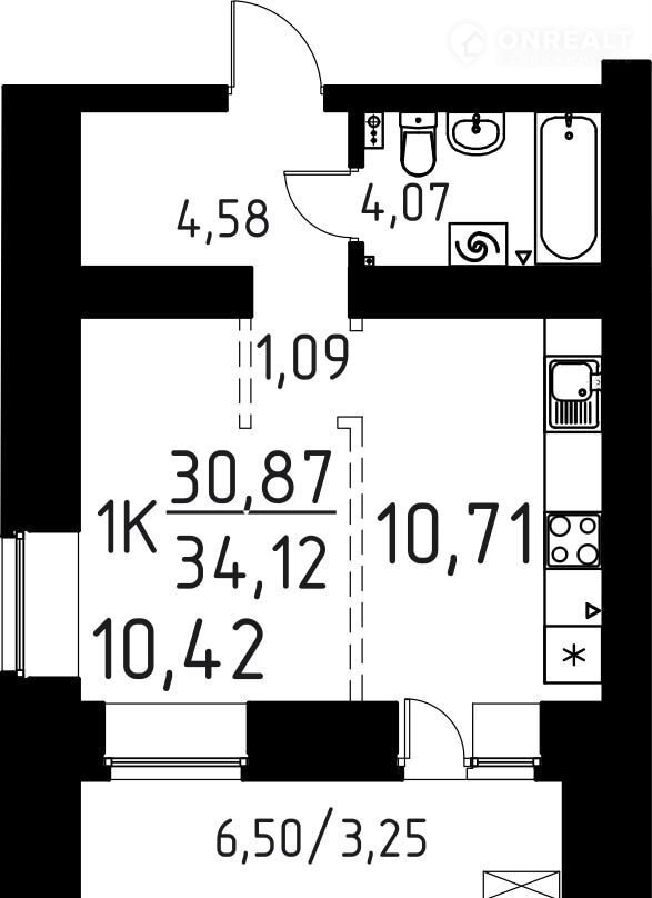 Общая площадь 34.1 м2