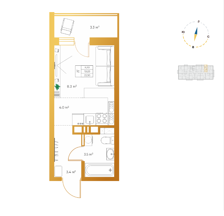 Количество комнат 1