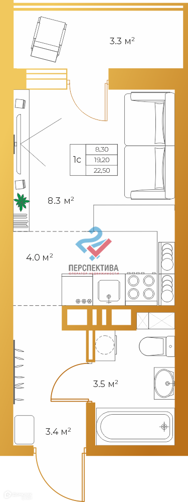 Общая площадь 23 м2