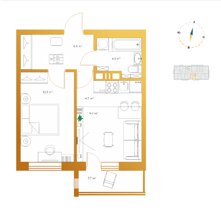 Общая площадь 41.2 м2