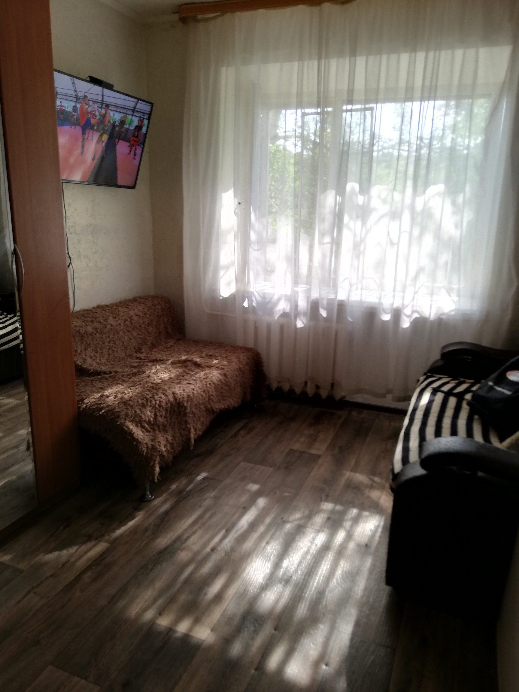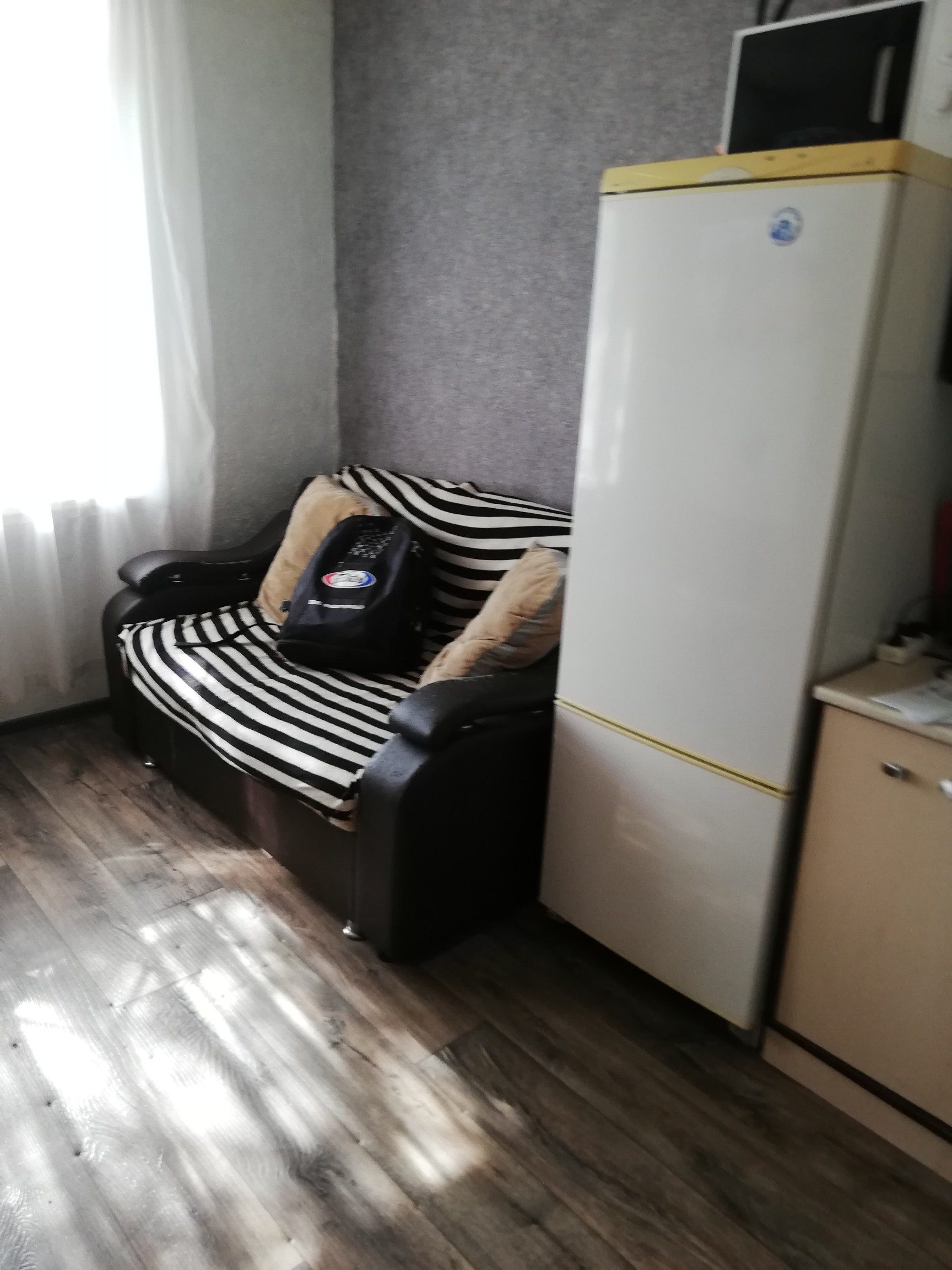 Продаётся светлая, тёплая гостинка, площадью 12,4. Окно пластиковое, санузел в комнате, душ на две квартиры. Рядом магазины, аптеки, школа, детский сад.  Остаётся диван, холодильник, кухонный гарнитур. Не доля! Собственник.
