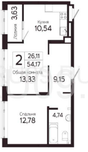 Общая площадь 56 м2