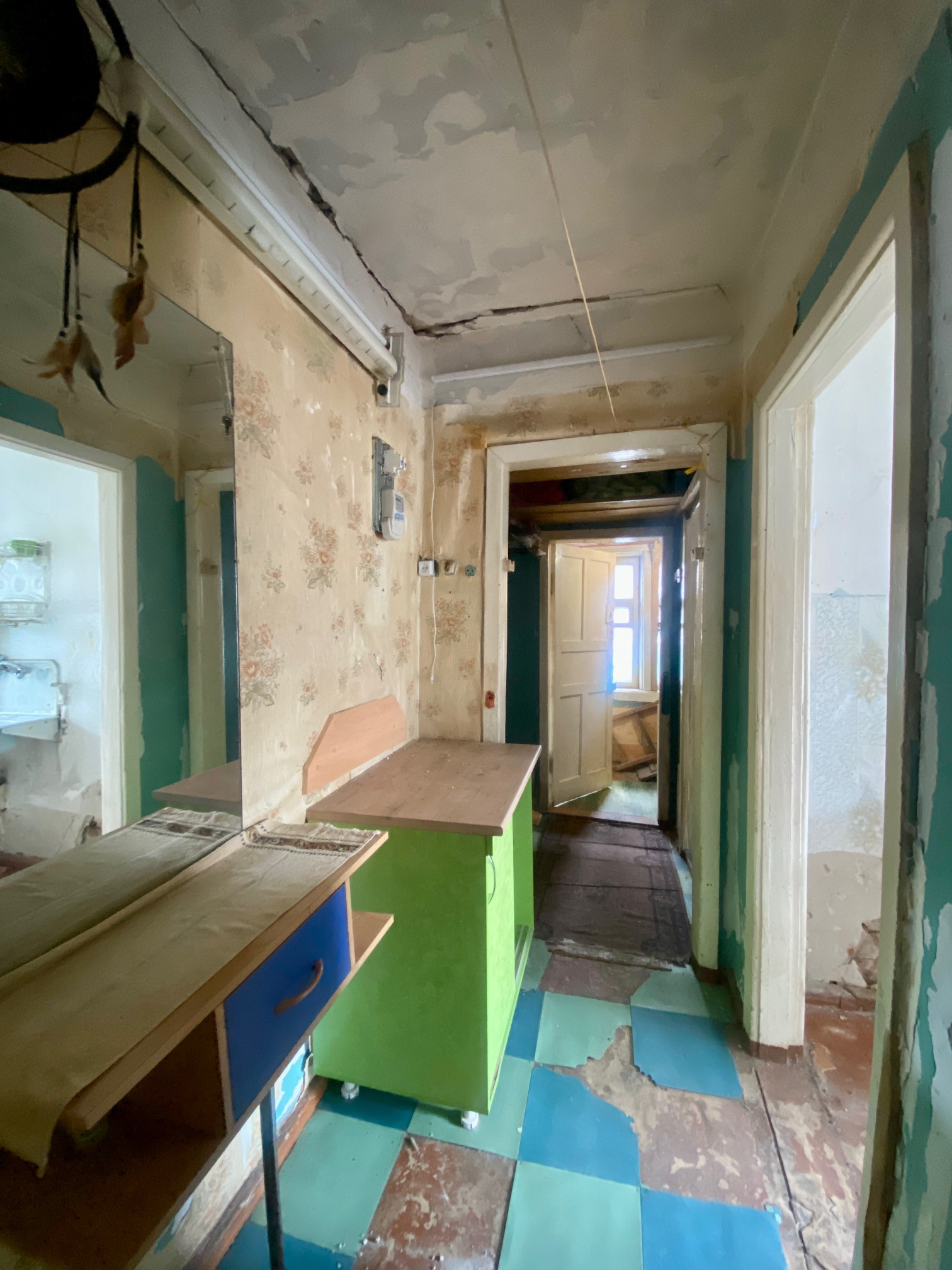 Начат ремонт, часть окон заменена на пластиковые.