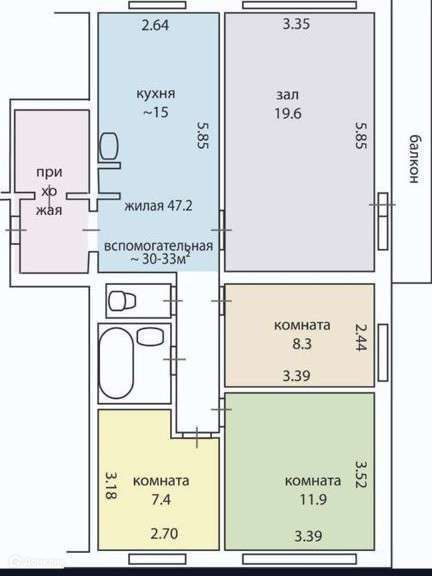 Общая площадь 70 м2