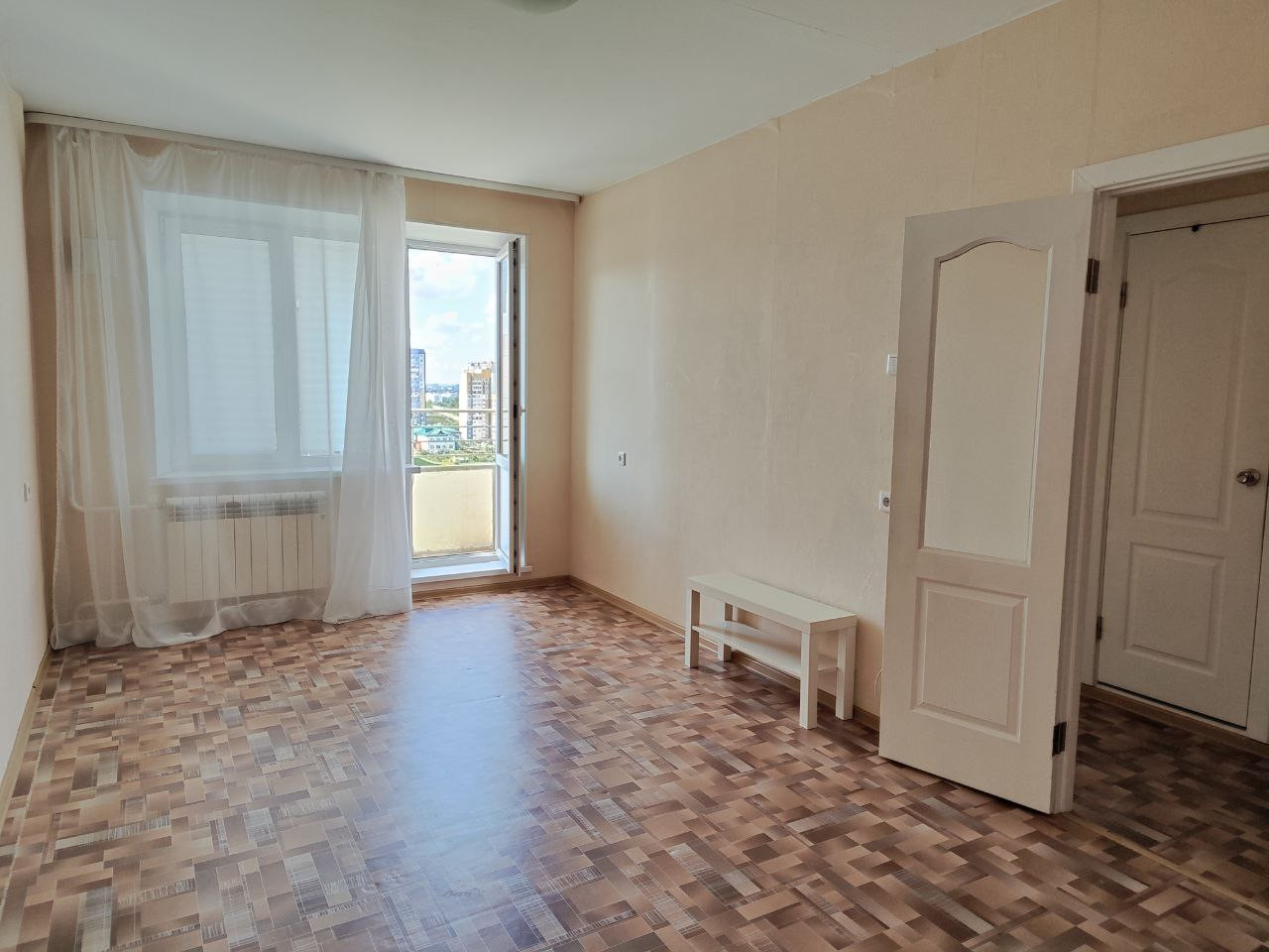 Выполнен ремонт от застройщика, окна выходят на солнечную сторону, прекрасный вид открывается с балкона.