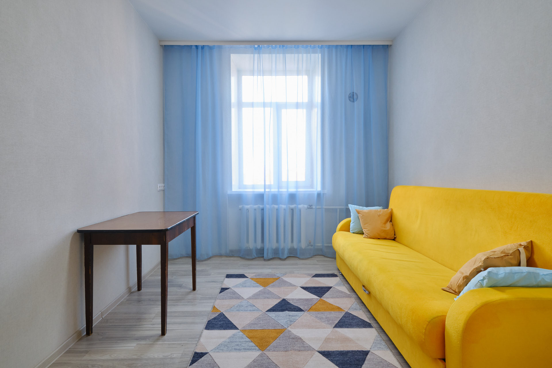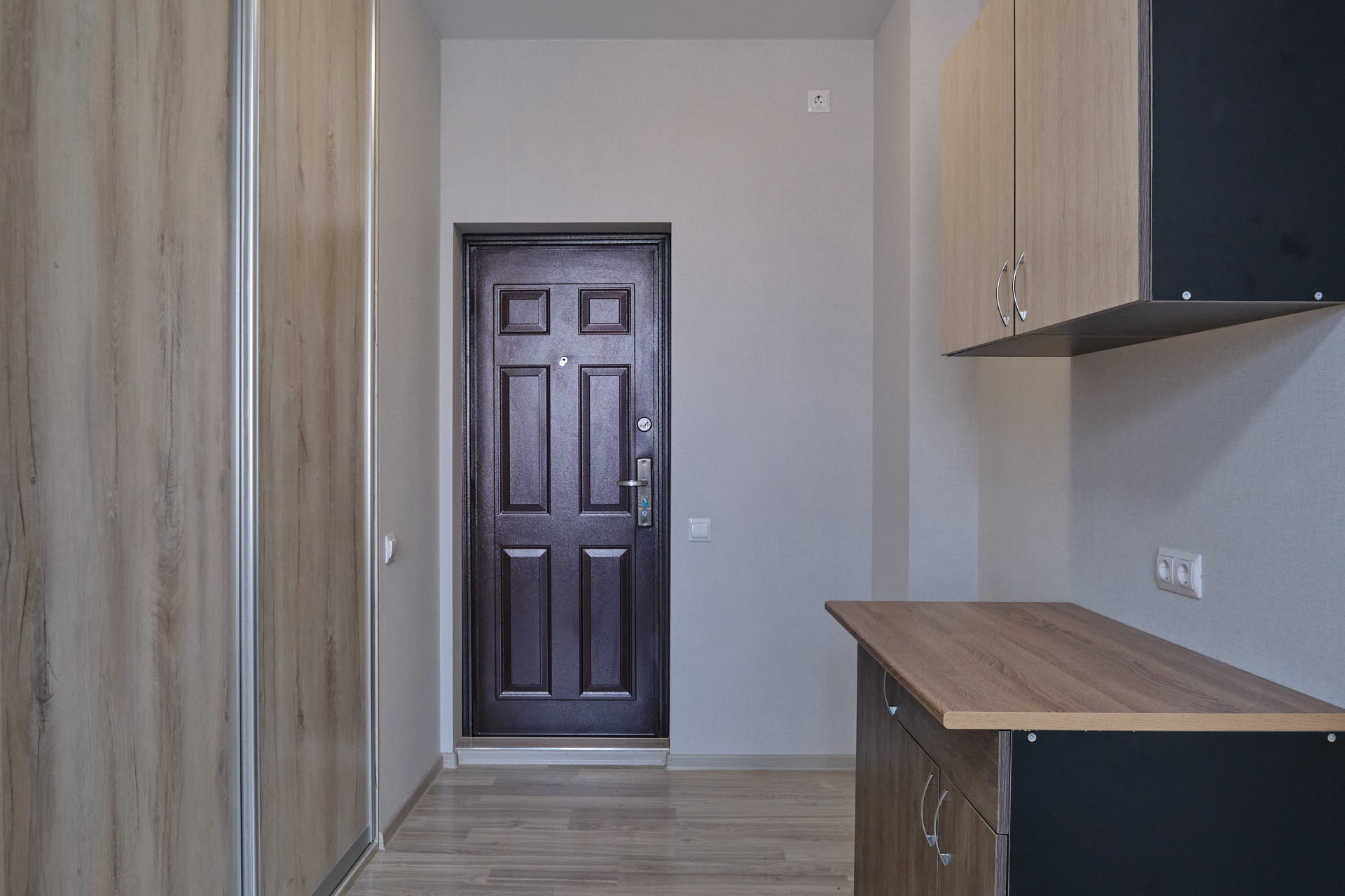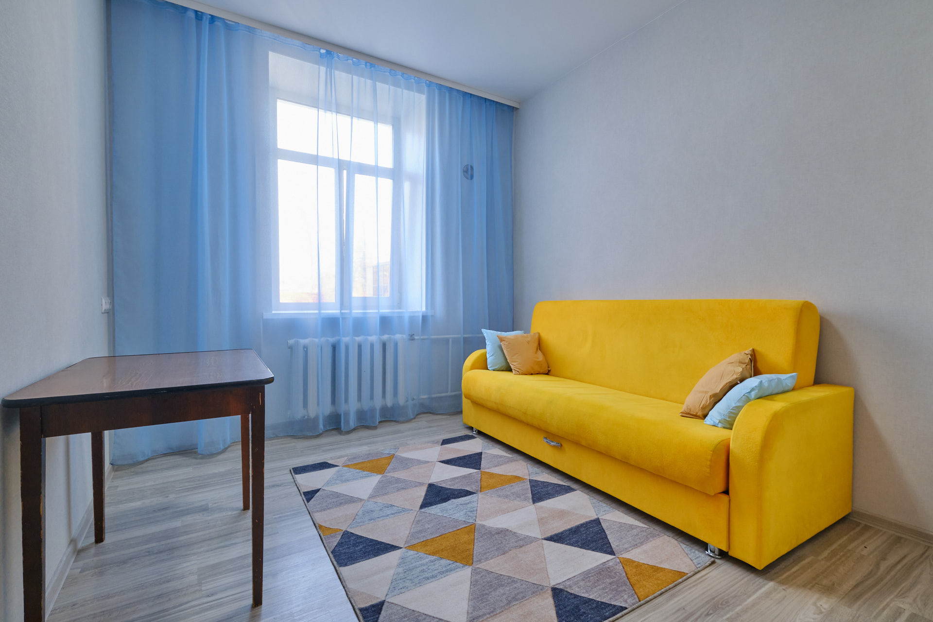 В квартире остаётся вся необходимая мебель, включая кухонный гарнитур, обеденный стол, диван, шкаф-купе для хранения одежды.
