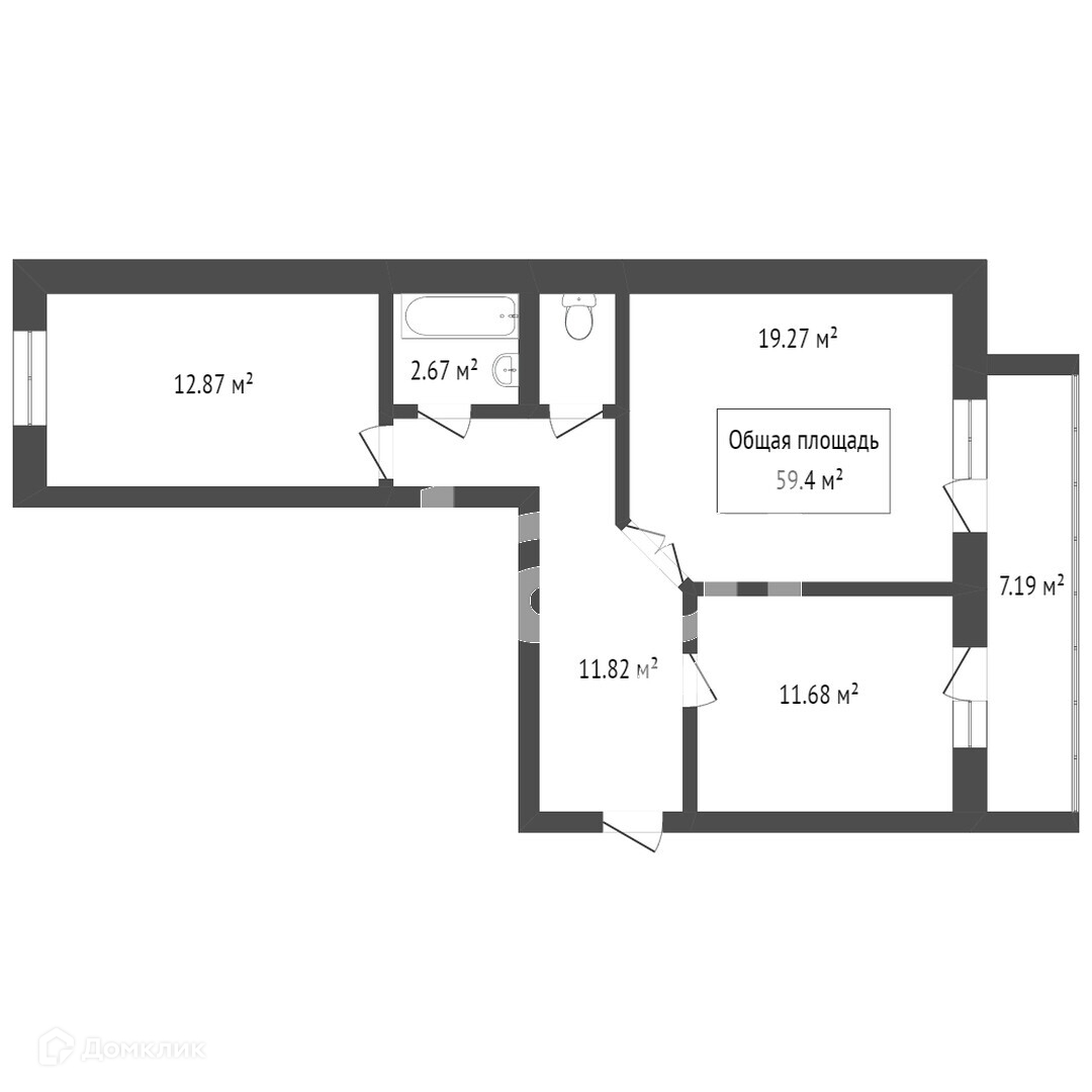 Общая площадь 63 м2