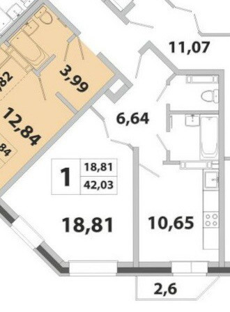 Общая площадь 42 м2