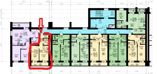 Общая площадь 43 м2