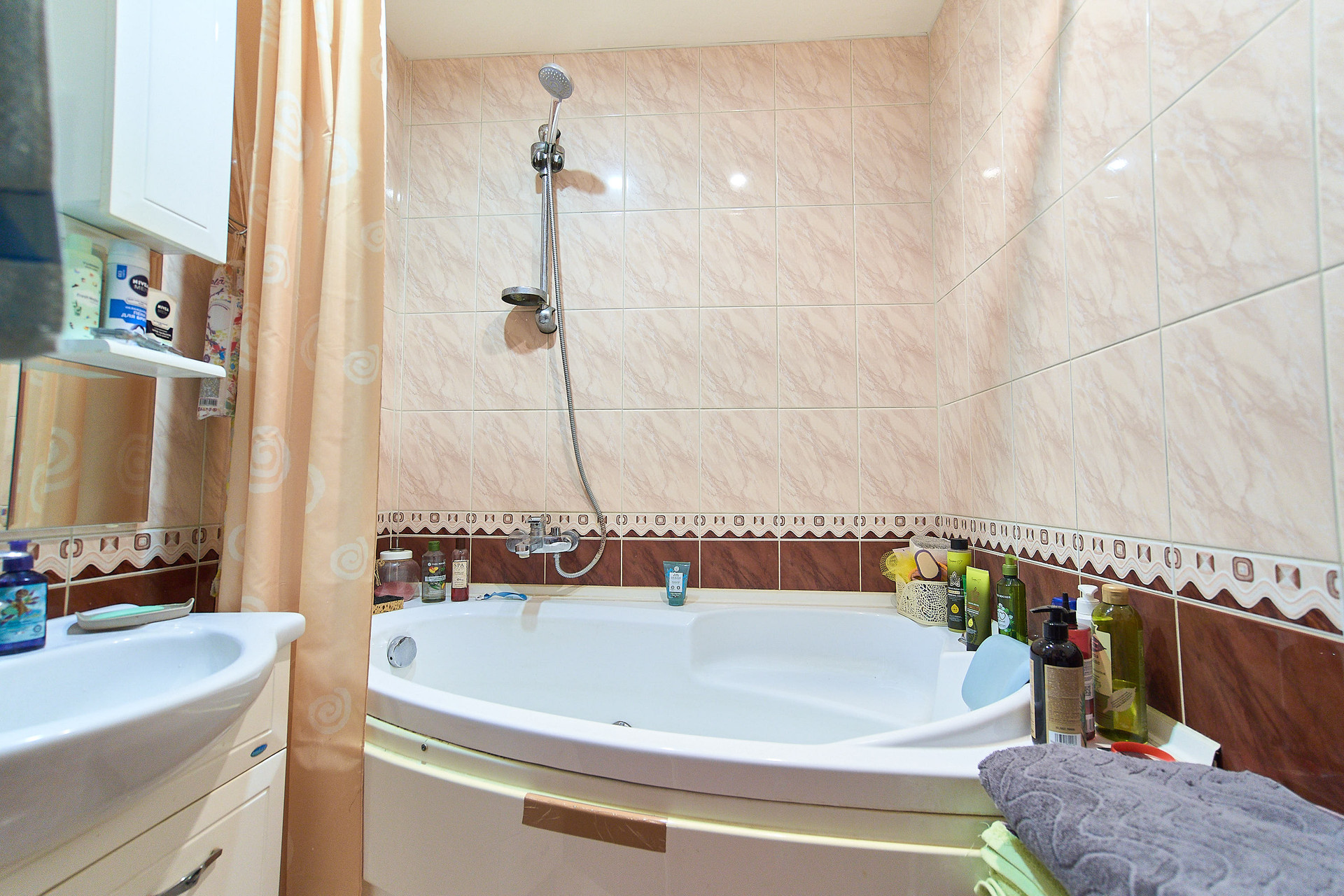 Пластиковые окна, лоджия застеклена. на полу паркет, санузел в кафеле,(остается водонагреватель), в ванной джакузи.