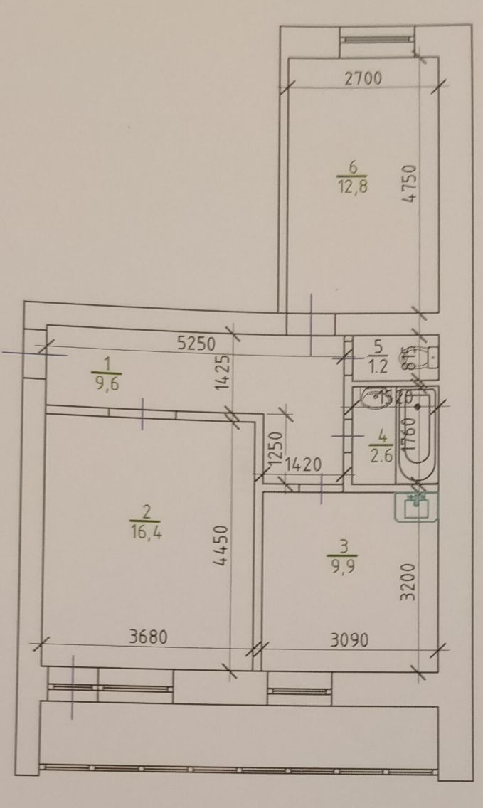Общая площадь 52.5 м2