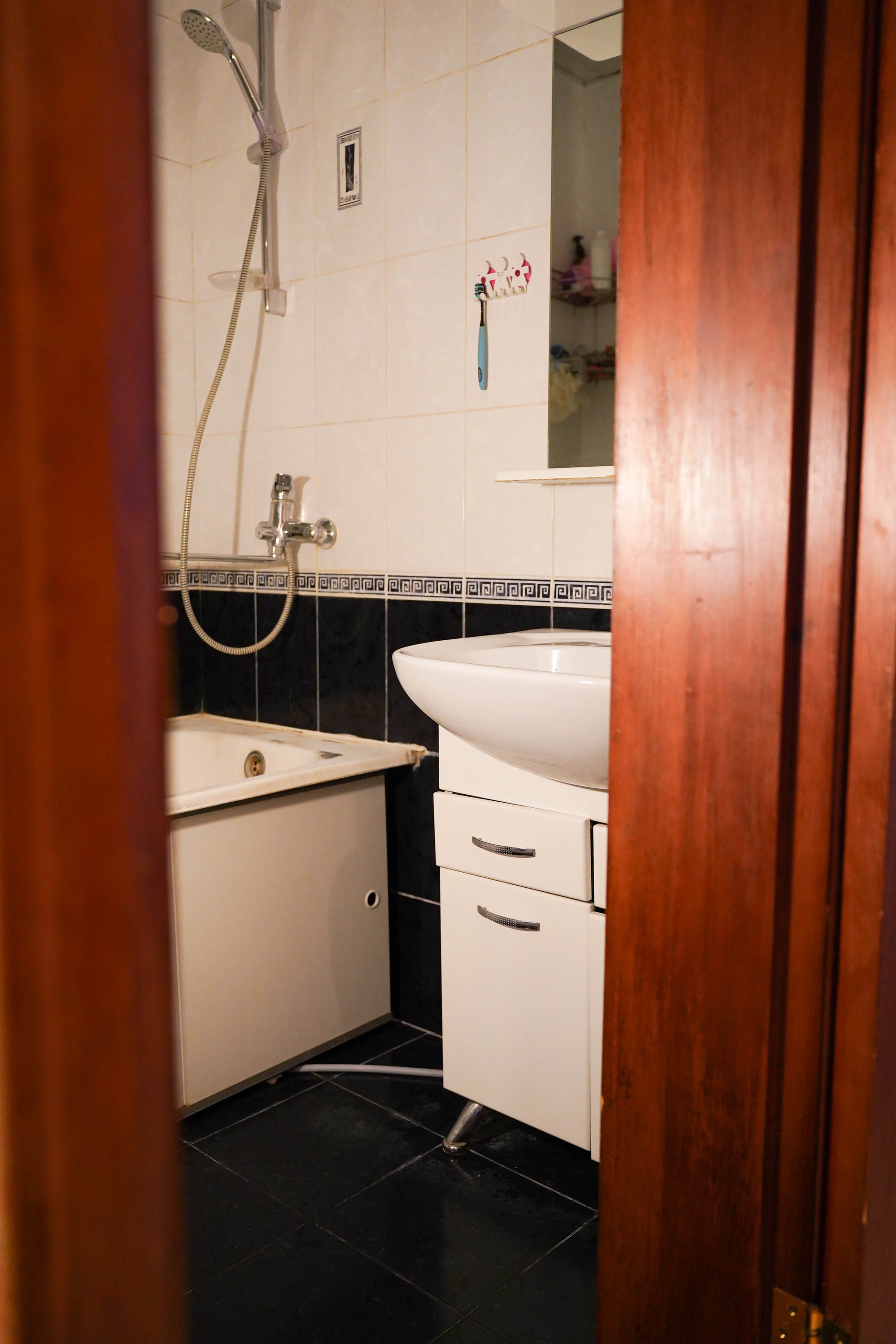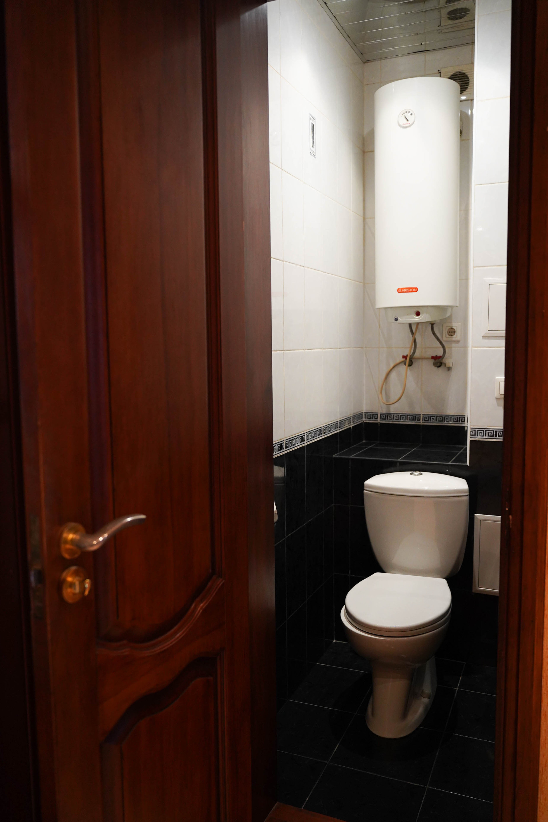 Санузел раздельный, бойлер, плитка, установлены приборы учета на холодную и горячую воду.