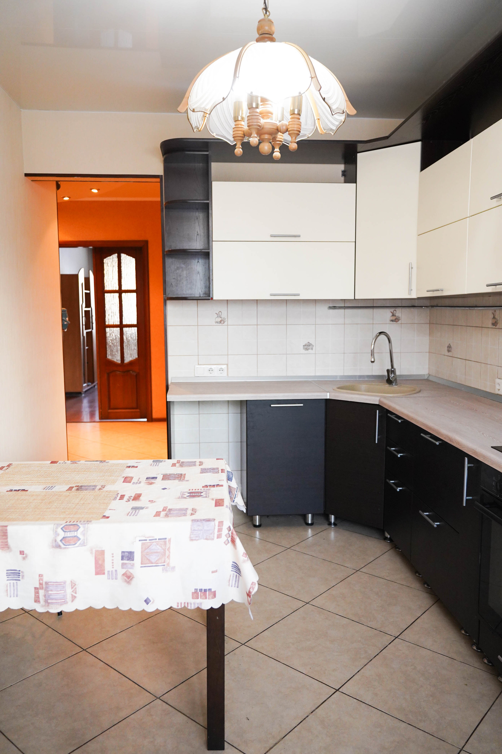 Из просторной кухни выход на застекленный балкон (3.7 кв.м.). Окна смотрят на большую парковку со стороны улицы. Остается встроенный кухонный гарнитур, варочная панель, духовой шкаф и вытяжка. Есть место для посудомойки. Также сделан теплый пол.