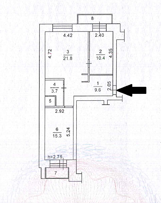 Высота потолков 2.75 м