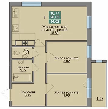 Общая площадь 39.59 м2