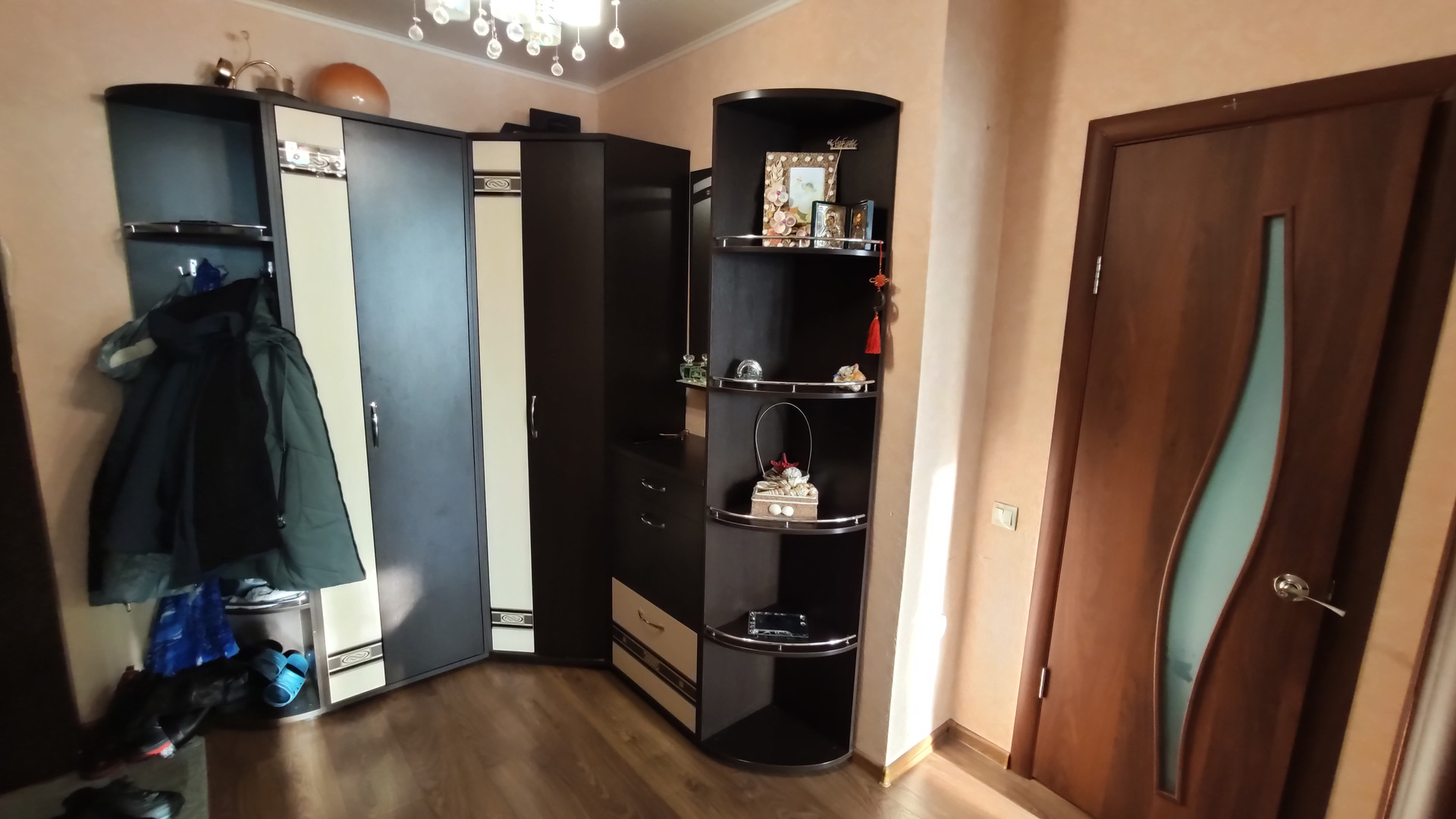 В квартире остается вся мебель, плита, стиральная машина, некоторая техника. Установлена надежная металлическая дверь. Все потолки натяжные. На полу в кухне и прихожей - ламинат, в комнате - ковролин. Большая приквартирная площадка с металлической дверью. Еще одной уникальной особенностью данной однокомнатной квартиры является наличие двух просторных лоджий с прекрасным видом. Чистый подъезд, установлены видеокамеры. Во дворе детская и спортивная площадки.