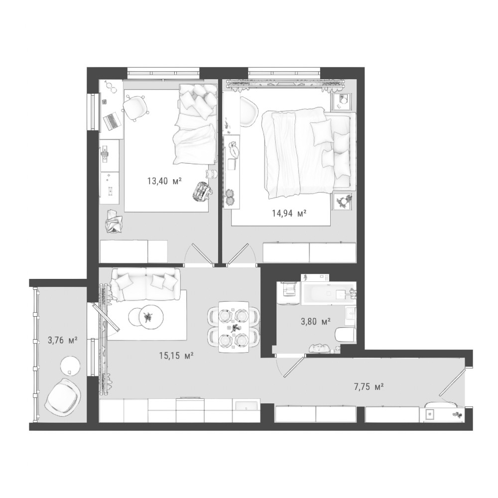 Общая площадь 58.8 м2