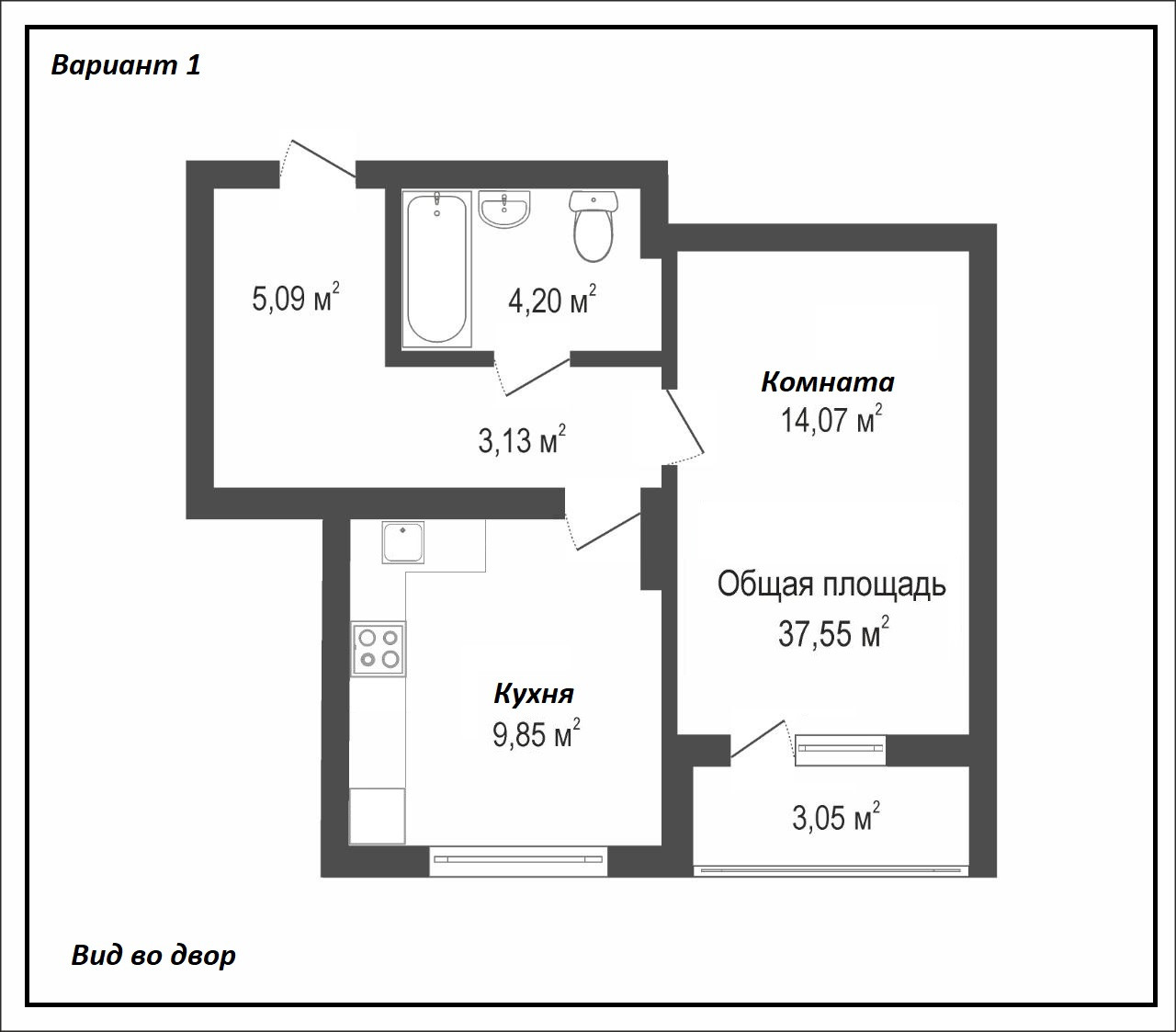 Балкон, лоджия 1 балкон