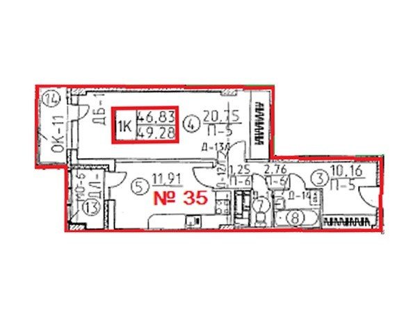 Общая площадь 46.8 м2