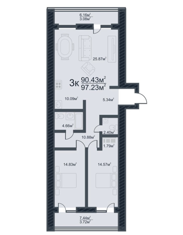 Общая площадь 97 м2