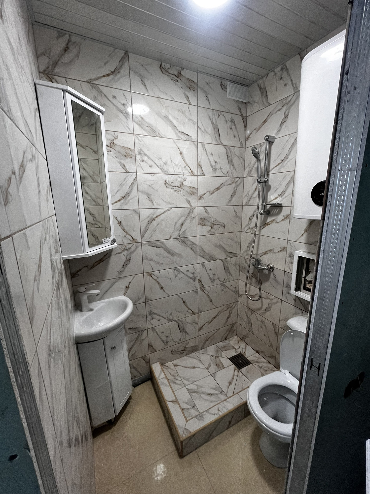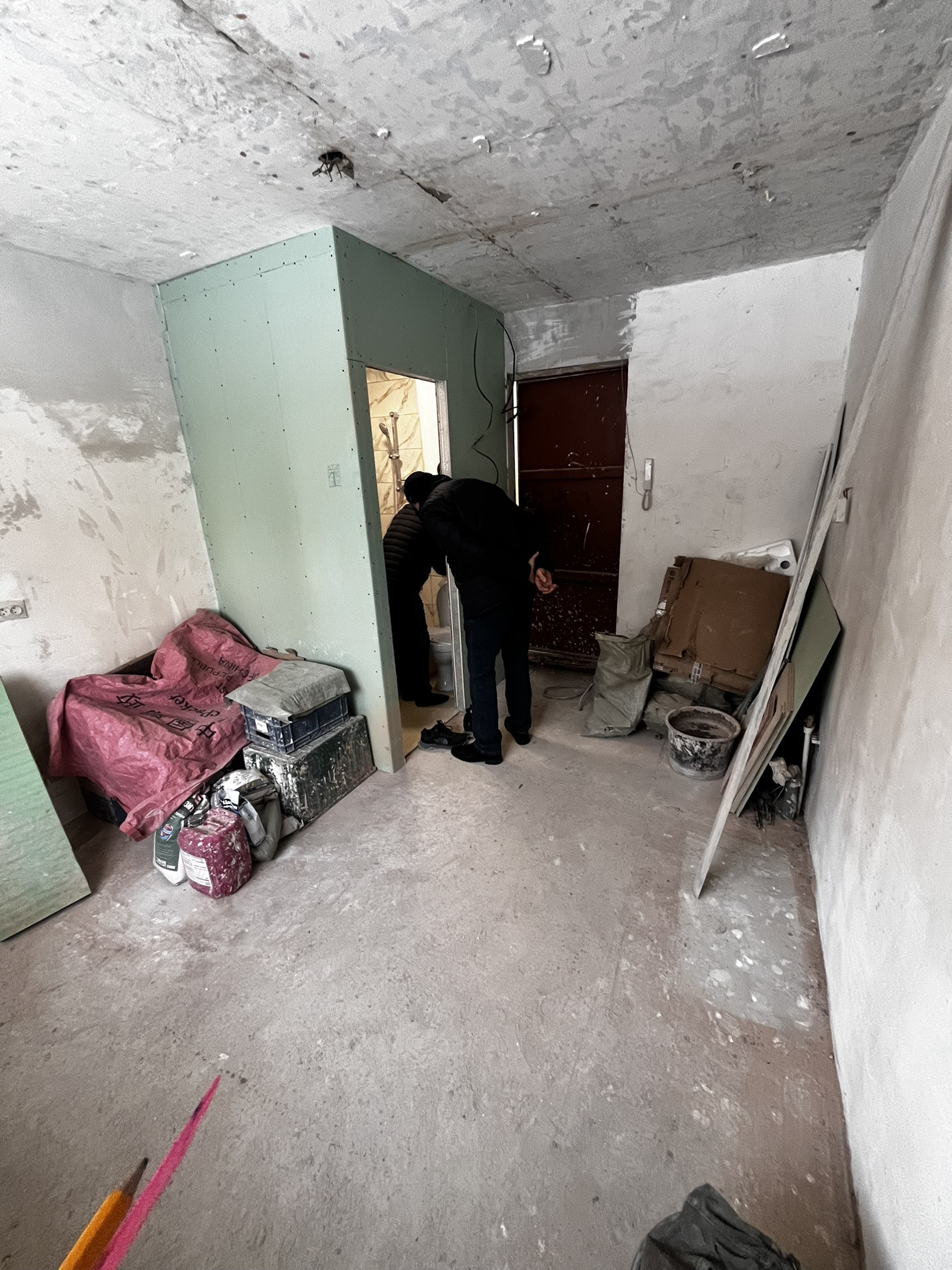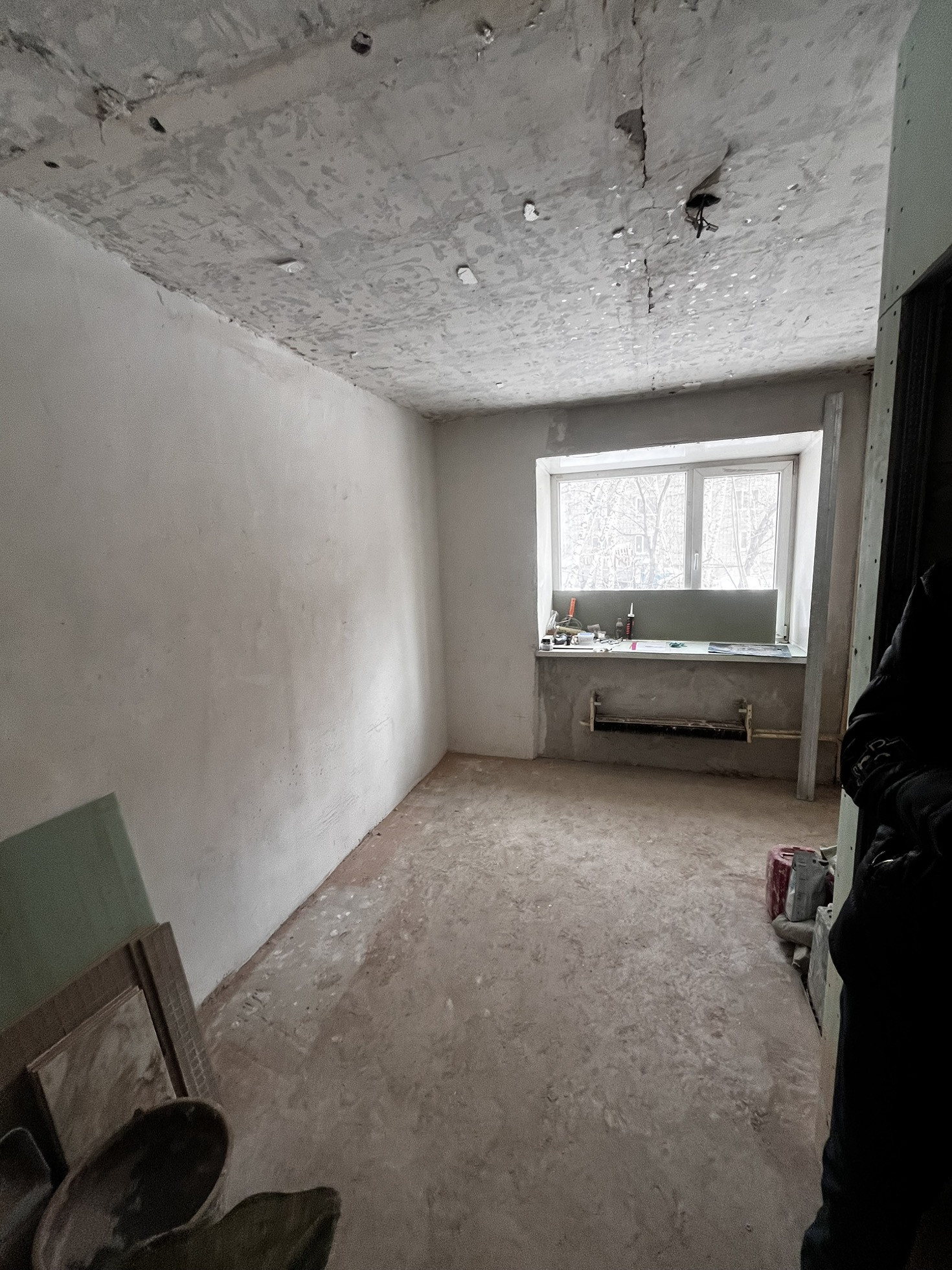 В квартире сделан пол, выровнены стены , сделана ванная комната под ключ