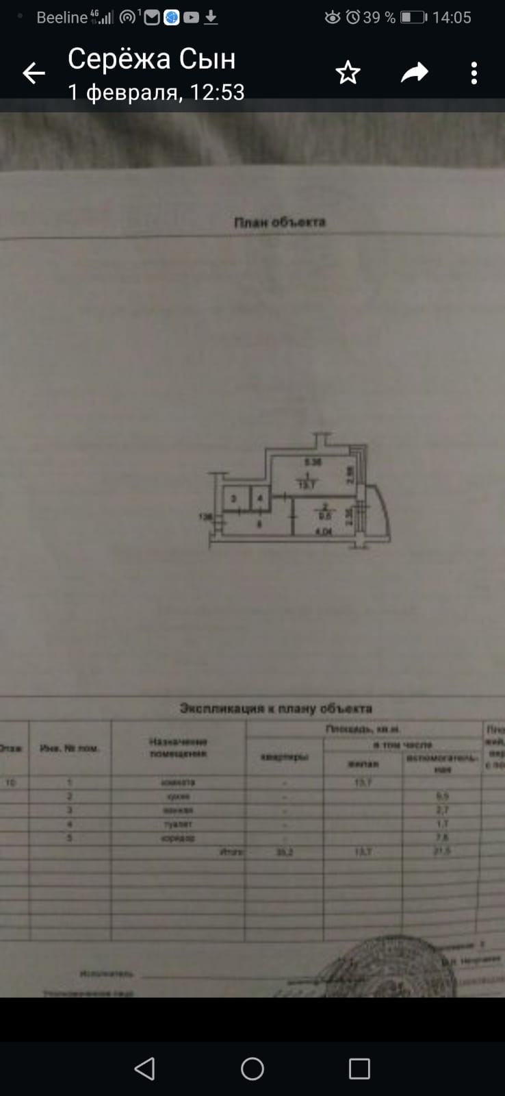 Общая площадь 35.2 м2
