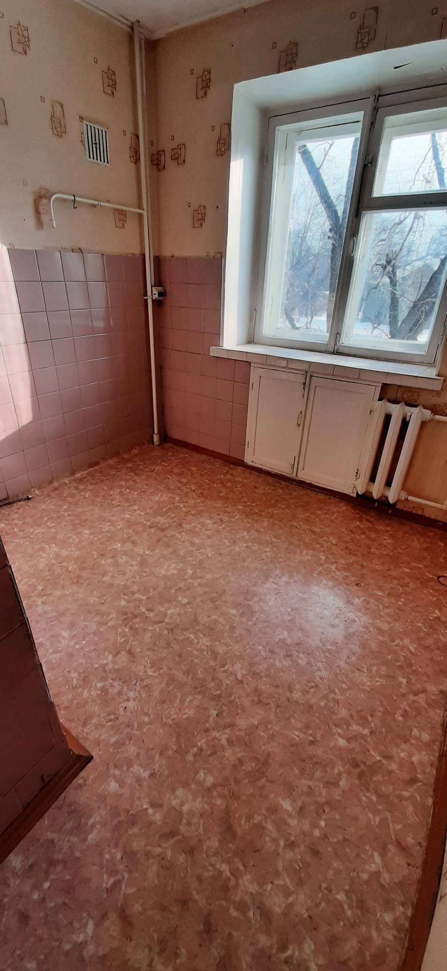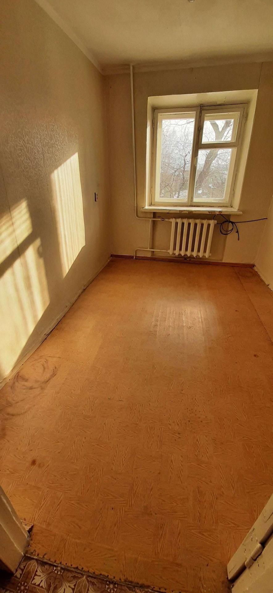 3х комнатная квартира а кирпичном доме, переделана из 4х комнатной (перепланировка узаконена). Без балкона. Окна на южную сторону. Теплая, светлая. Требует ремонта, полностью освобождена. Дом газифицирован. Рядом школа, магазины, во дворе - детский сад.