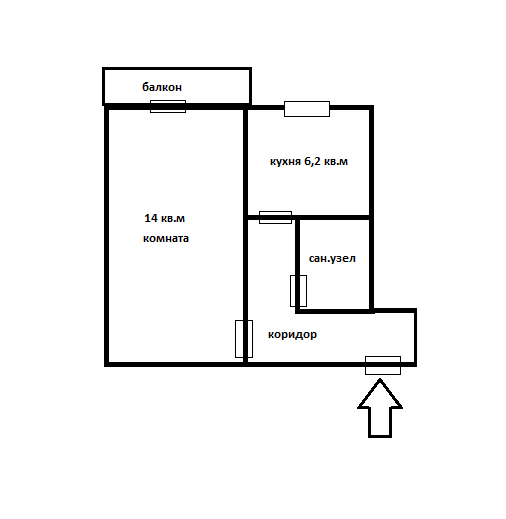Балкон, лоджия 1 балкон