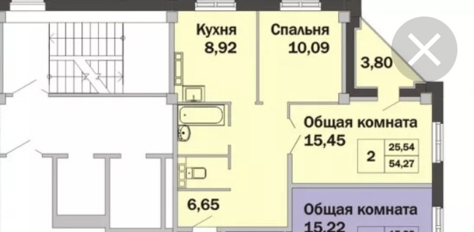 Общая площадь 53 м2