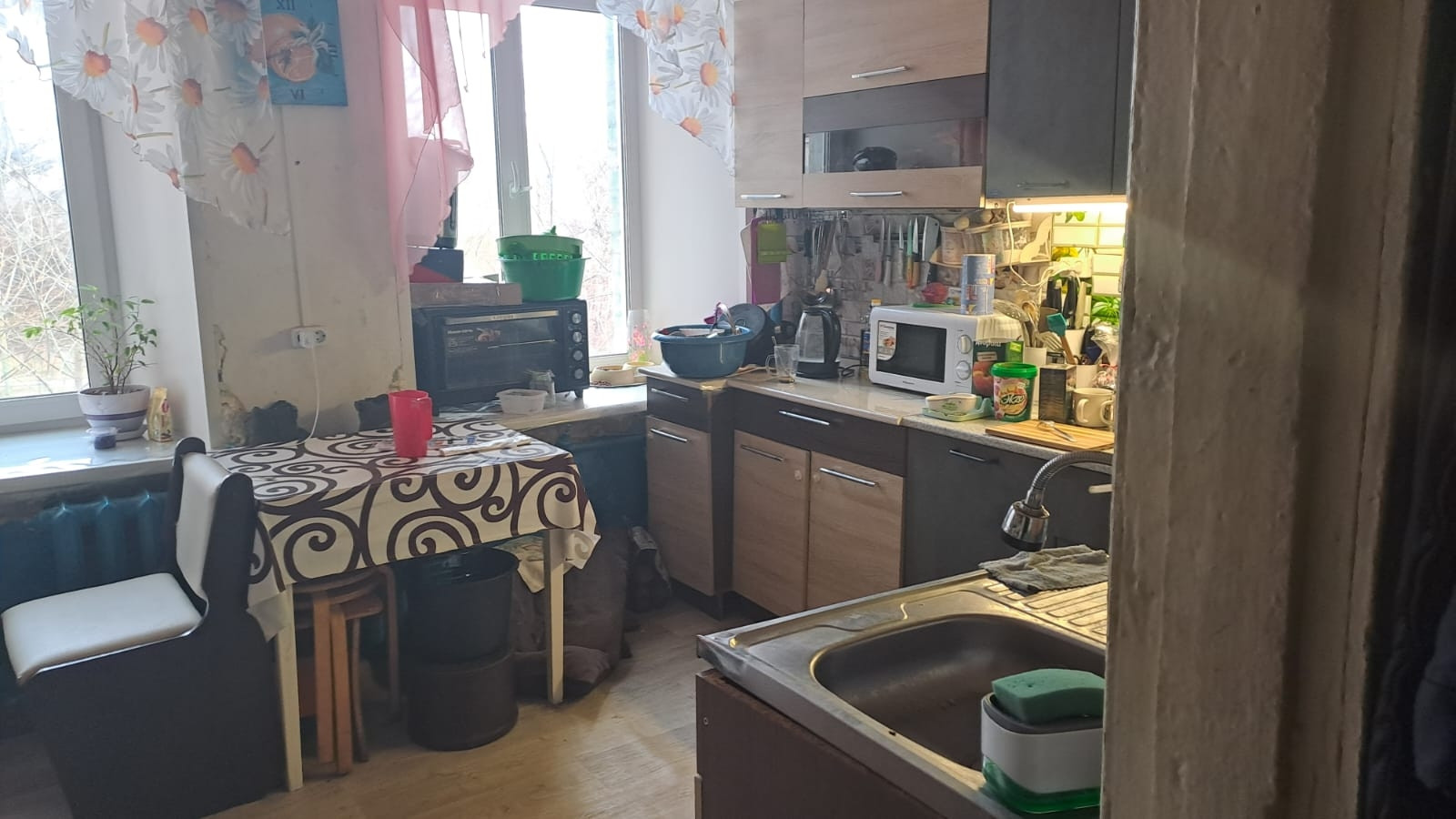 Продаётся квартира- секционка, на 4ых хозяев, после ремонта, замена всего- вплоть до проводки, в квартире выравнены стены, установлено новое пластиковое окно, новые обои, натянут потолок, проводка и розетки по евростандарту,новый пол, установлена качественная дверь. Обстановка уютная, соседи порядочные, маргиналов нет!!! На кухне, как и везде пластиковые окна, кухня обустроена двумя кухонными гарнитурами, электроплитой, столом, обеденной зоной. Соседи доброжелательные, при подписании согласия о продаже секции каждый приехал к нотариусу, соседи очень дружные, харизматичные, отзывчивые люди. Октябрьский р-он, Пушкина. В доступности два детских сада, школа, железнодородный техникум, поликлиника, развлекательный комплекс Шарики, масса продовольственных магазинов. Остановка Путепровод. Цена не завышена, заинтересованы в продаже!!!