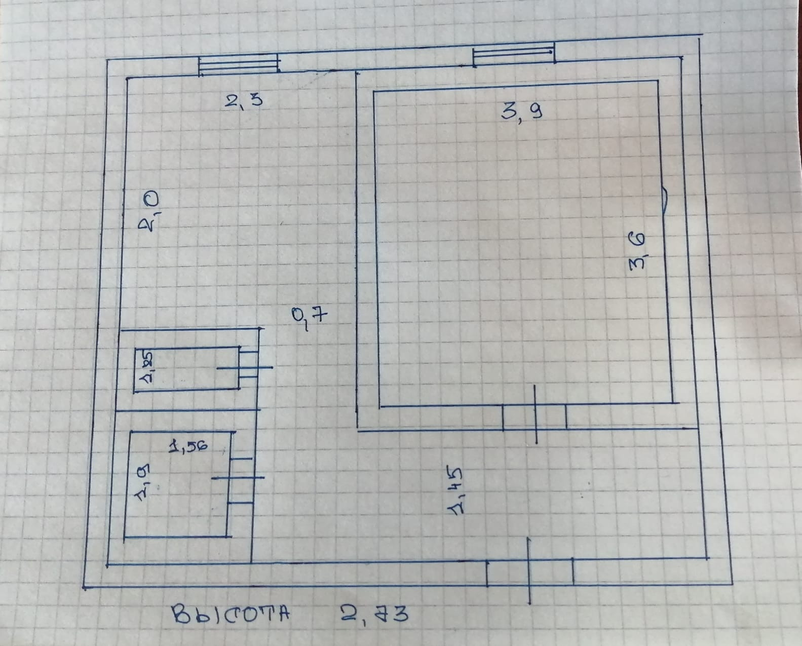 Высота потолков 2.7 м