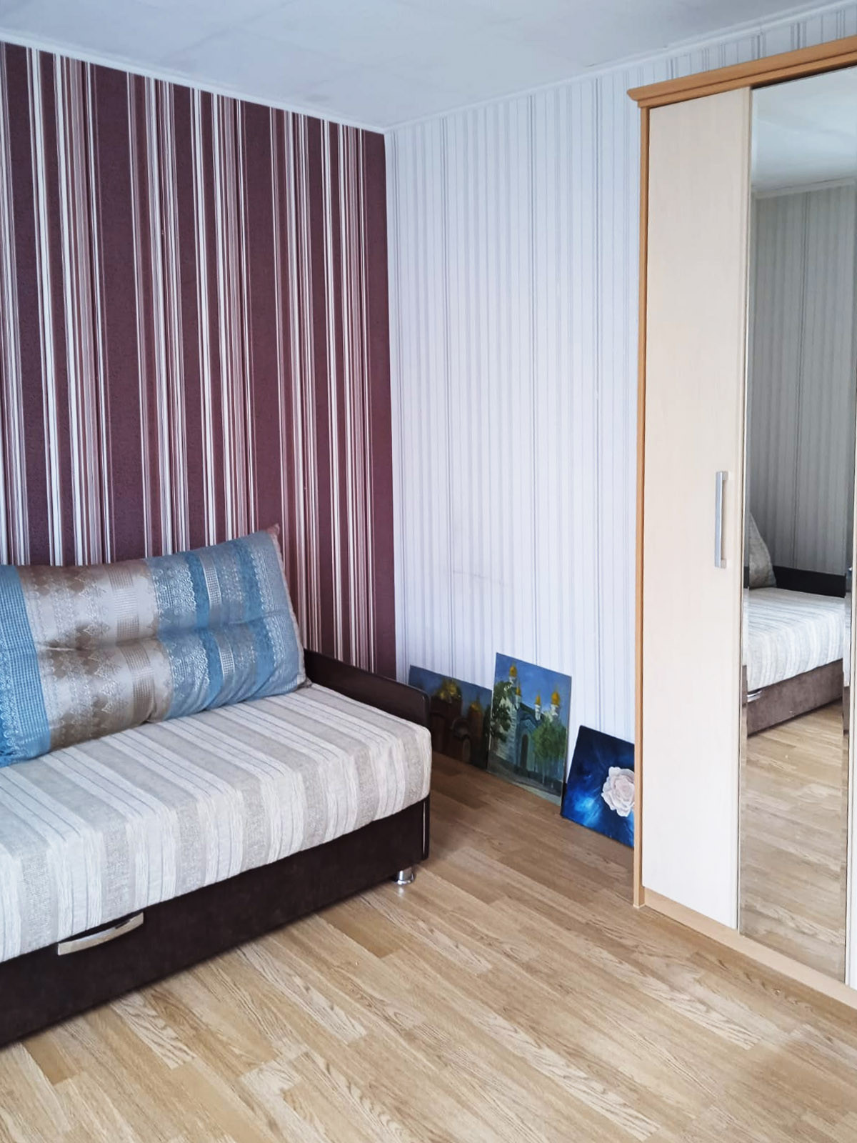 Продается двухкомнатная квартира на втором этаже в панельном доме. Дом расположен в тихом, но развивающемся районе. Во дворе парковка и детская площадка. Остановка находится в двух минутах ходьбы, центральная улица города в 10 минутах. Квартира угловая, светлая, не промерзает зимой. Окна ПВХ, ламинат, счетчики, водонагреватель, теплые полы в санузле.
