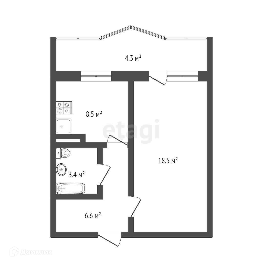 1-комнатная квартира, 39.3 м2, этаж 4 / 10, на продажу в Томске, улица Павла Нарановича, 2