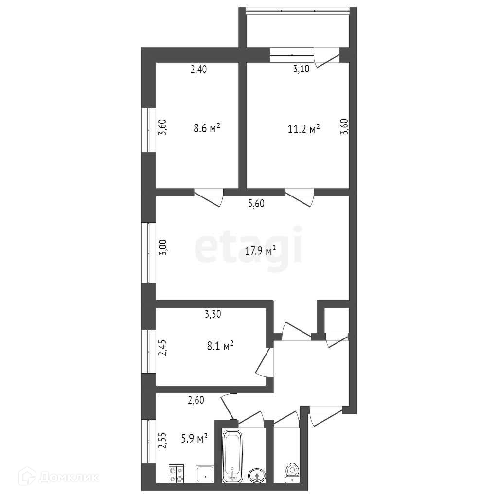 Общая площадь 60.8 м2
