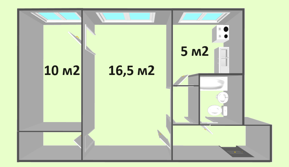 Общая площадь 44 м2
