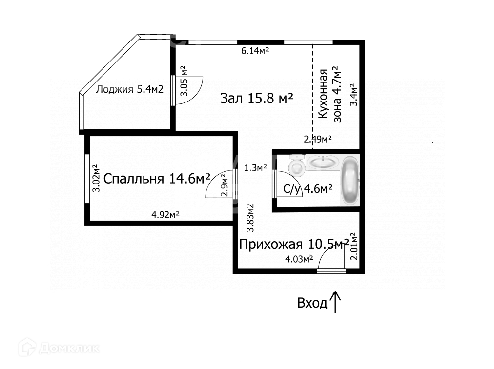 Общая площадь 52.9 м2