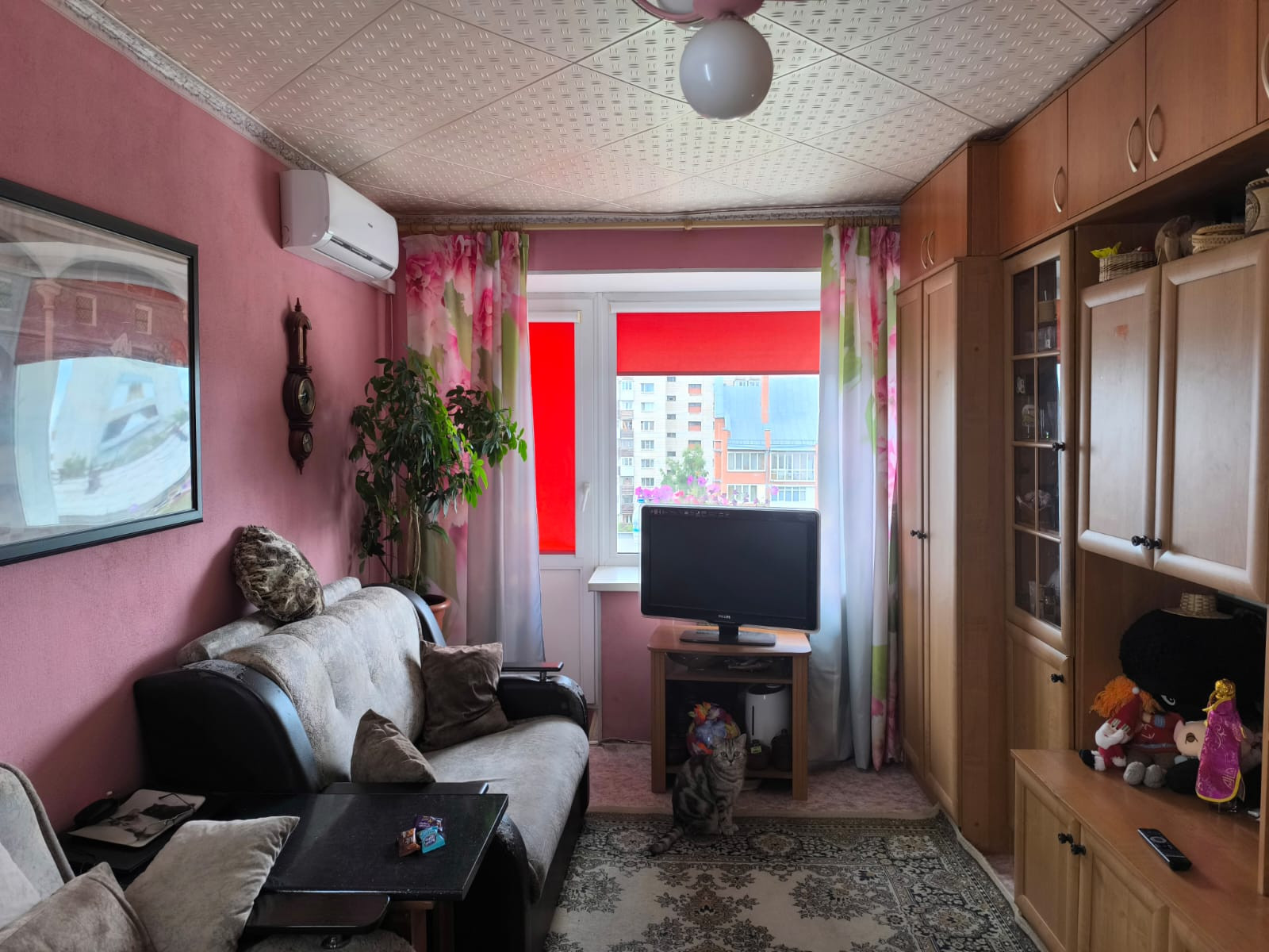 В квартире остаются кухонный гарнитур с посудомоечной машиной,стенка в зале, диван, кондиционер.