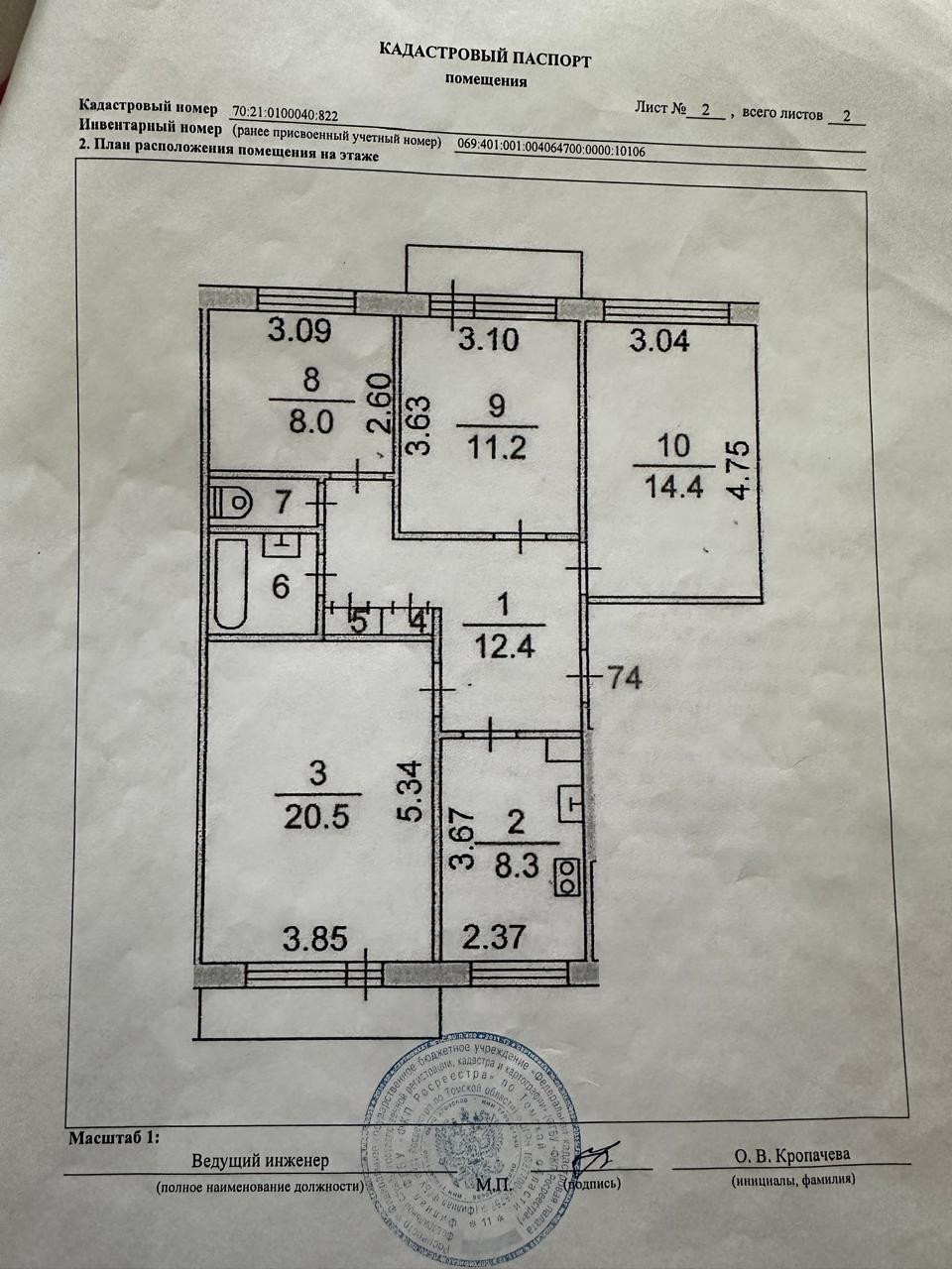 Продаётся просторная 4-комнатная квартира площадью 79.9 квадратных метров, расположенная на 3 этаже пятиэтажного панельного дома, построенного в 1977 году. Дом находится в районе Каштак-2 по адресу Интернационалистов, 24.