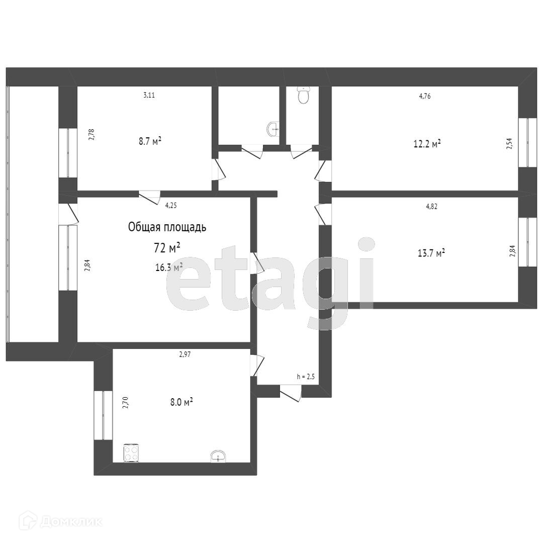 Общая площадь 76.9 м2