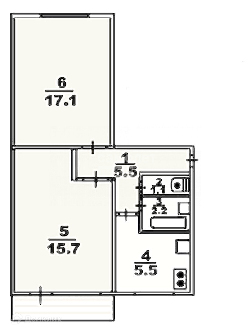 2-комнатная квартира, 48 м2, этаж 2 / 5, на продажу в Томске, улица Смирнова, 16