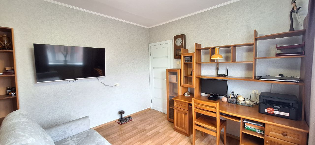 Отличный вариант покупки квартиры для семьи! Наличие в шаговой доступности школ и детских садов приятная возможность не тратить время на передвижение по городу. Четырехкомнатная квартира с раздельными комнатами, сан.узел раздельный, окна, балкон пластик. Квартира светлая, солнечная, очень уютная. В квартире остается кухонный гарнитур, 3 шкафа-купе, кондиционер в гостиной, стиральная машинка. Чистая продажа.