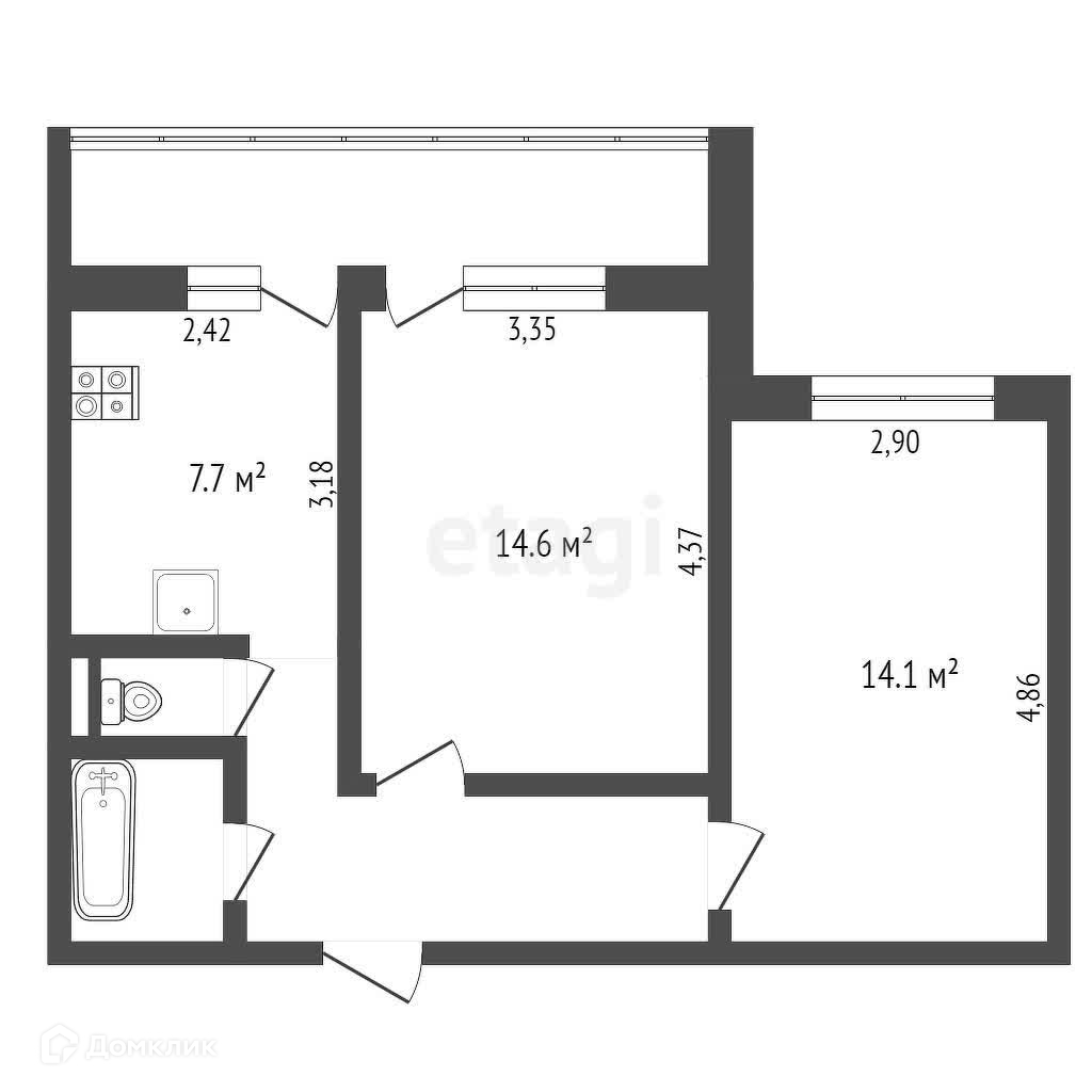 Балкон, лоджия 1 балкон