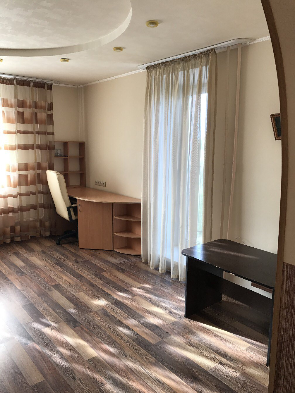 Из окон открывается вид на улицу, благодаря чему в квартире всегда достаточно естественного света. Два балкона предоставляют дополнительное пространство для отдыха и возможность насладиться свежим воздухом без выхода из дома.