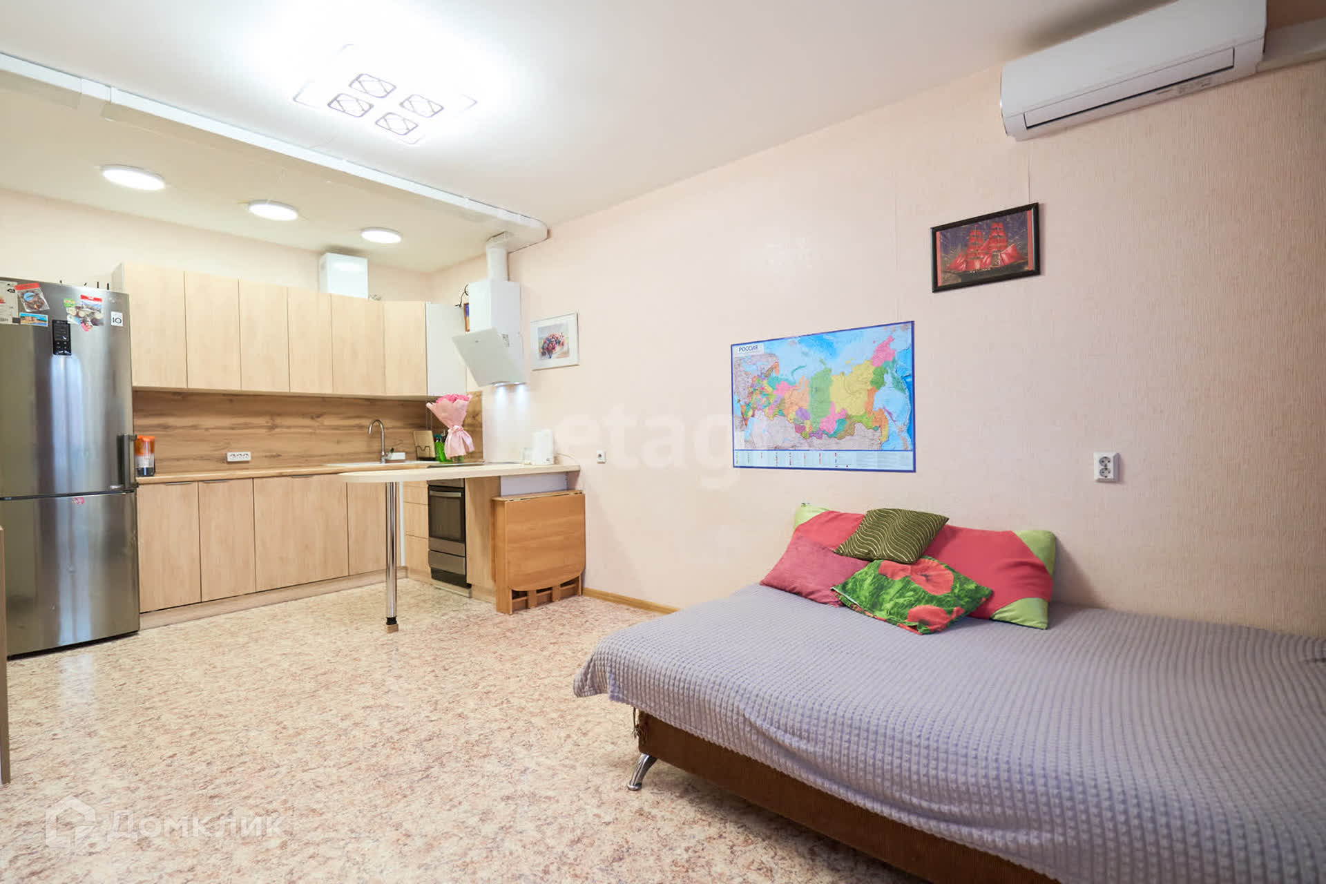 В квартире остаются два хороших обслуженных кондиционера. Вместительный шкаф купе в коридоре, кухонный гарнитур, плита и вытяжка. Техника остается по договорённости.