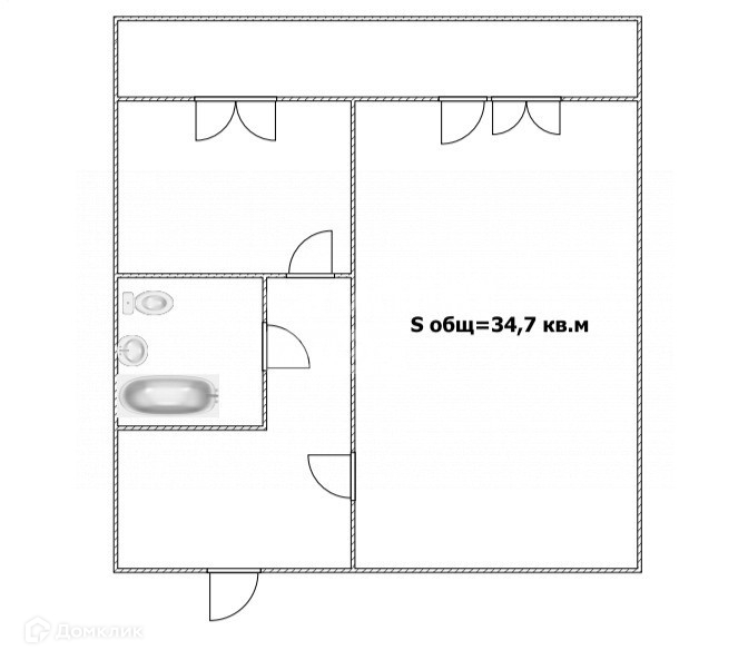 Общая площадь 34.7 м2
