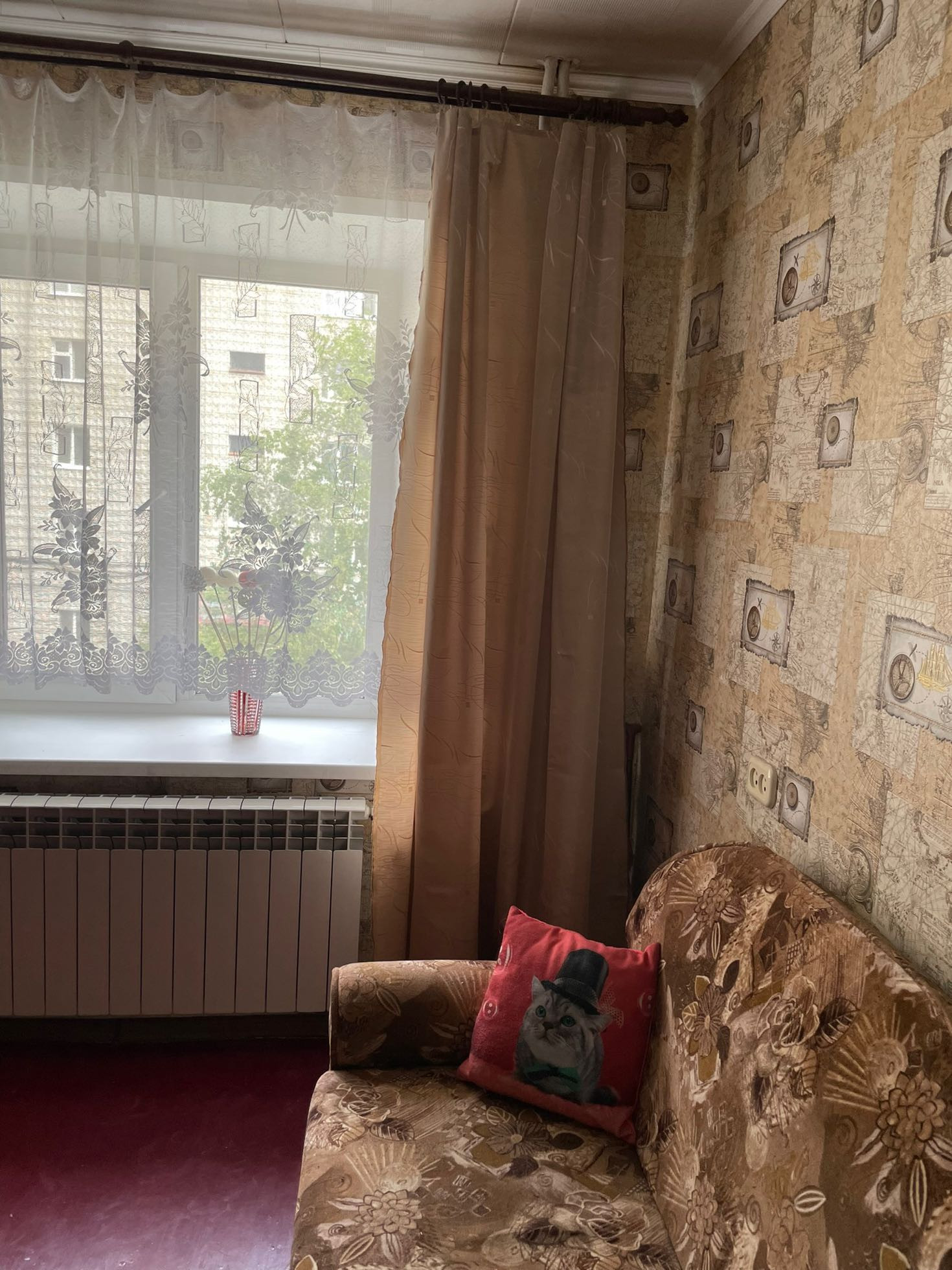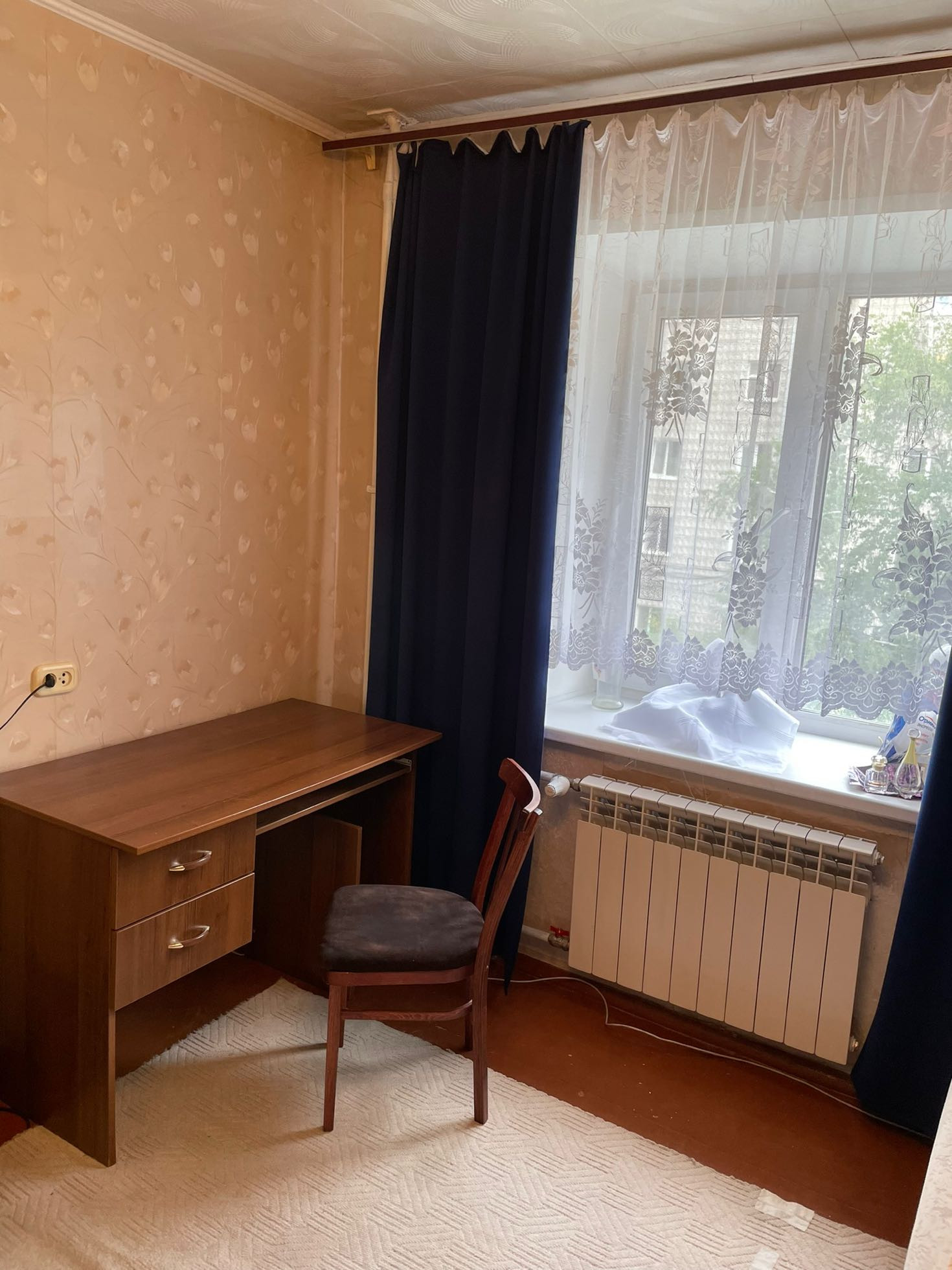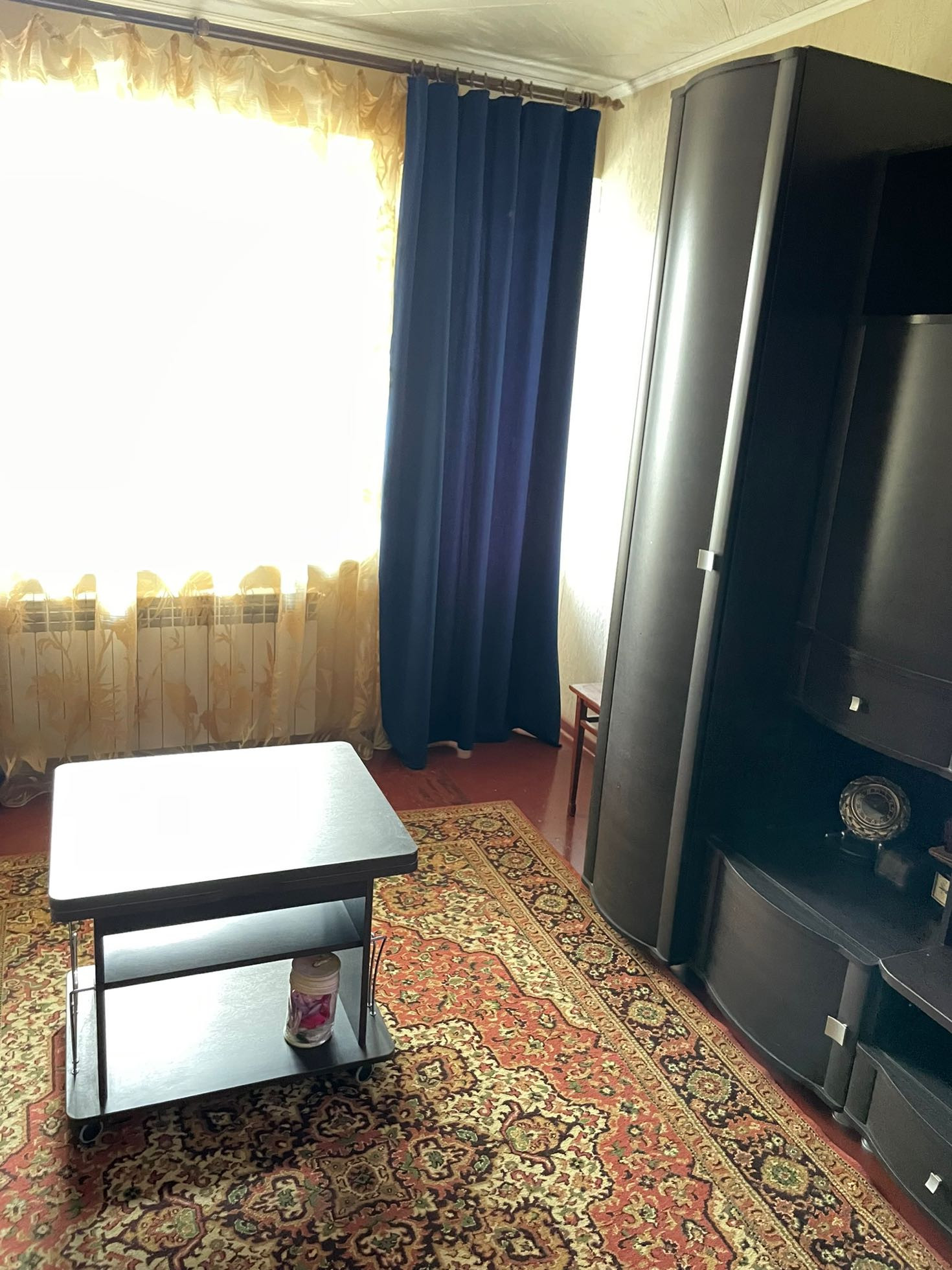 Квартира теплая и уютная с косметическим ремонтом располагается на третьем этаже шестиэтажного кирпичного дома. Все три комнаты имеют квадратную форму и полностью мебелированы. Вся мебель и бытовая техника остается новым жильцам. Дом находится в центре города,но в стороне от трасс.В данном районе есть все,что необходимо как взрослым, так и детям. Дом расположен рядом с Цетральным рынком города, имеется вся микроструктура- школы, детские сады, магазины, аптеки, спортивный комплекс.  Рядом с домом автобусная остановка, от которой можно доехать без пересадки в любой район города.