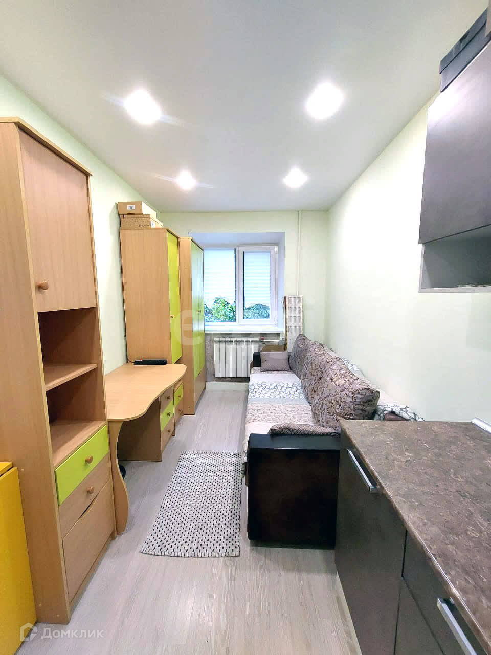 Продается уютная студия в кирпичном доме (долевая форма собственности) по адресу: Россия, Томск, проспект Фрунзе, 230. Квартира расположена на первом этаже пятиэтажного дома, построенного в 1965 году. Общая площадь квартиры составляет 16 кв. м. Высота потолков 2.5 метра. Окна выходят во двор, поэтому в квартире тихо и спокойно.