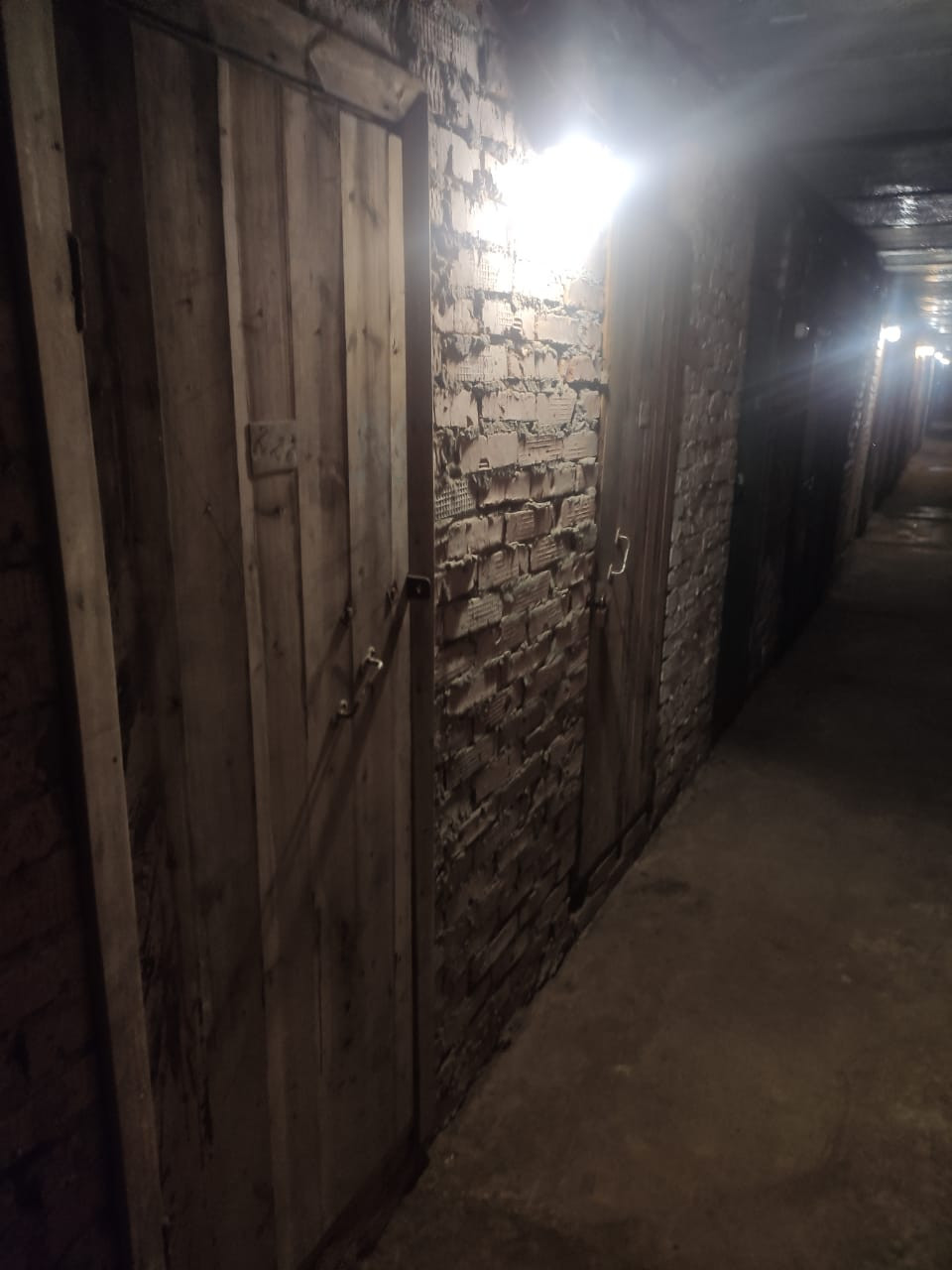Новая деревянная дверь, металлические стеллажи.