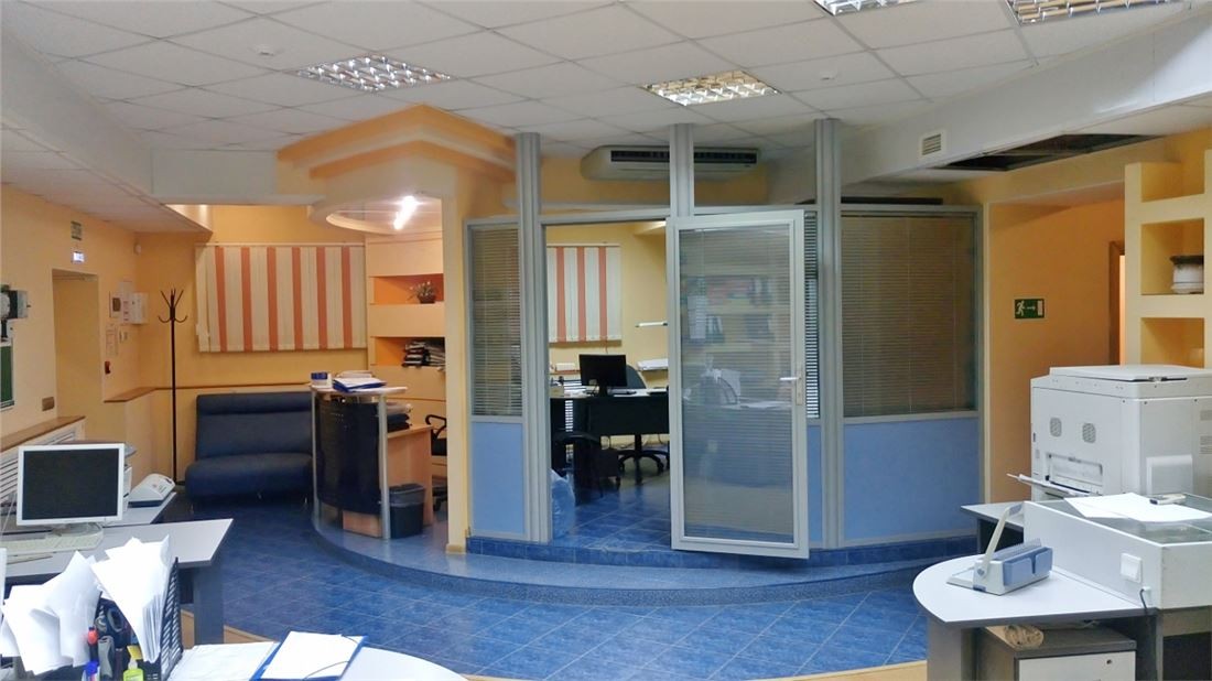 Имеется кабинет директора, «ресепшн», переговорная комната, два изолированных кабинета, зал "open space" для работников, зона отдыха, хозяйственное помещение, туалет.