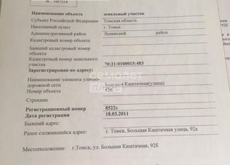 Продам участок 7, 5 соток. Есть прямой выход к ТЦ Мирамикс Вода проходит по границе участка, газ подведен, электричество есть. Можно прописаться. Документы готовы к продаже. Подходит под любые виды расчета. Кадастровый номер 70: 21: 0100027: 260 |